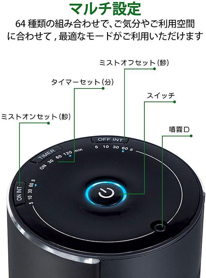 (30分間、60分間、120分間、時間制限無し)噴霧ON・連続運転・噴霧OFFの組み合わせは64種類設定可能です。