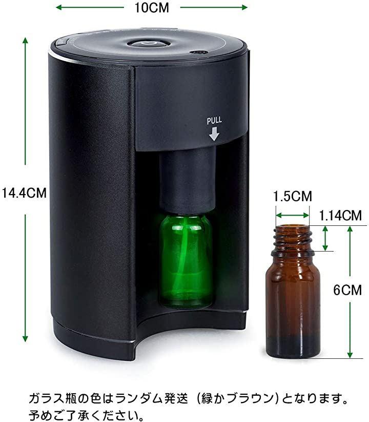 市販されている10ml/15ml/20mlのアロマオイル(口径要確認)も直接に取り付けてでき、様々なエッセンシャルオイル例えば、ラベンダー、ローズ、ペパーミント、レモングラス、ローズマリー、フルーツの種類など天然アロマそのままを満喫いただけます。
