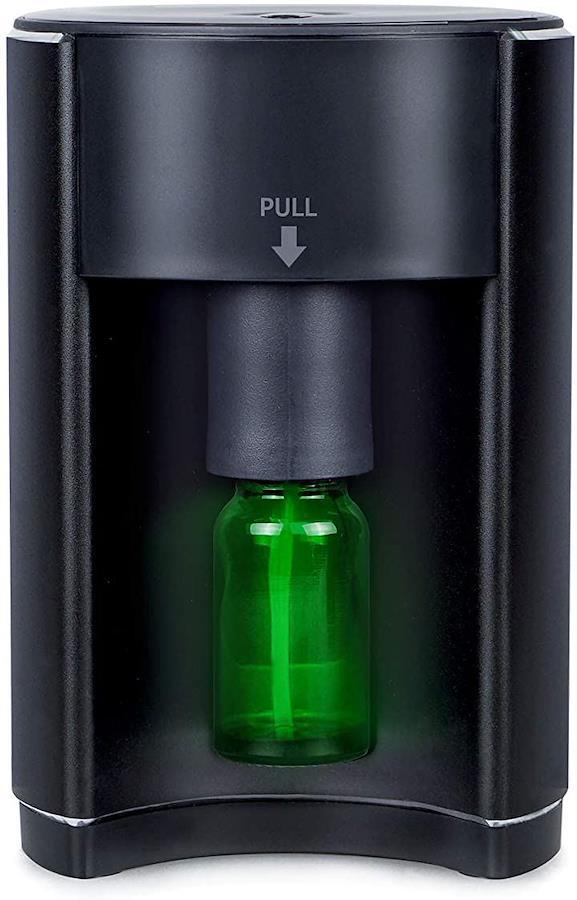 「手入れ楽々・稼動音低減デザイン」メンテナンス時、5mlのエタノールに精油瓶に入れ、本体にセットし、スイッチを押すだけで残った香りがすぐ揮発し綺麗になります。