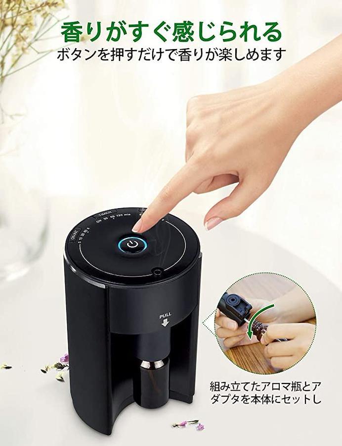 「マルチ設定・目に見えるアロマ残量」4段階の時間設定。