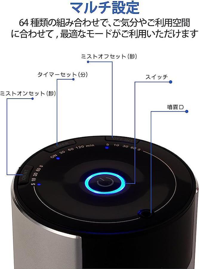 「マルチ設定・目に見えるアロマ残量」4段階の時間設定。