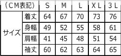 サイズ S M L LL 3L着 丈 64 67 70 73 76身 幅 49 52 55 58 61肩 幅 41 45 48 51 54袖 丈 60 62 63 64 65