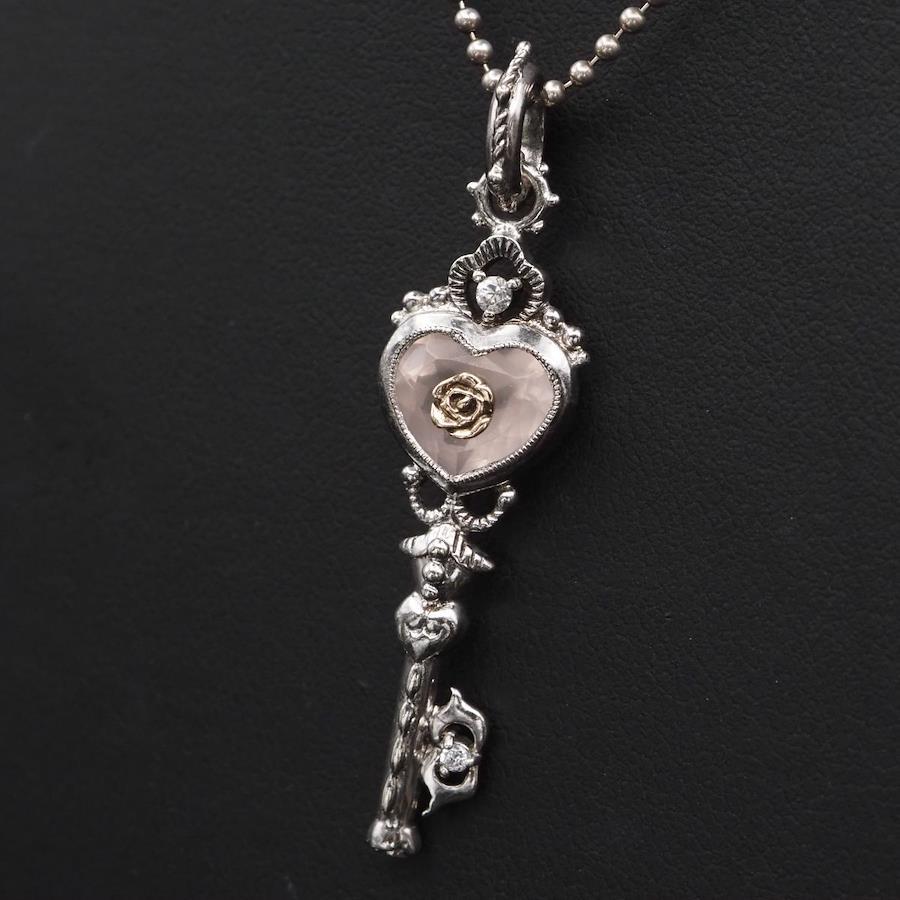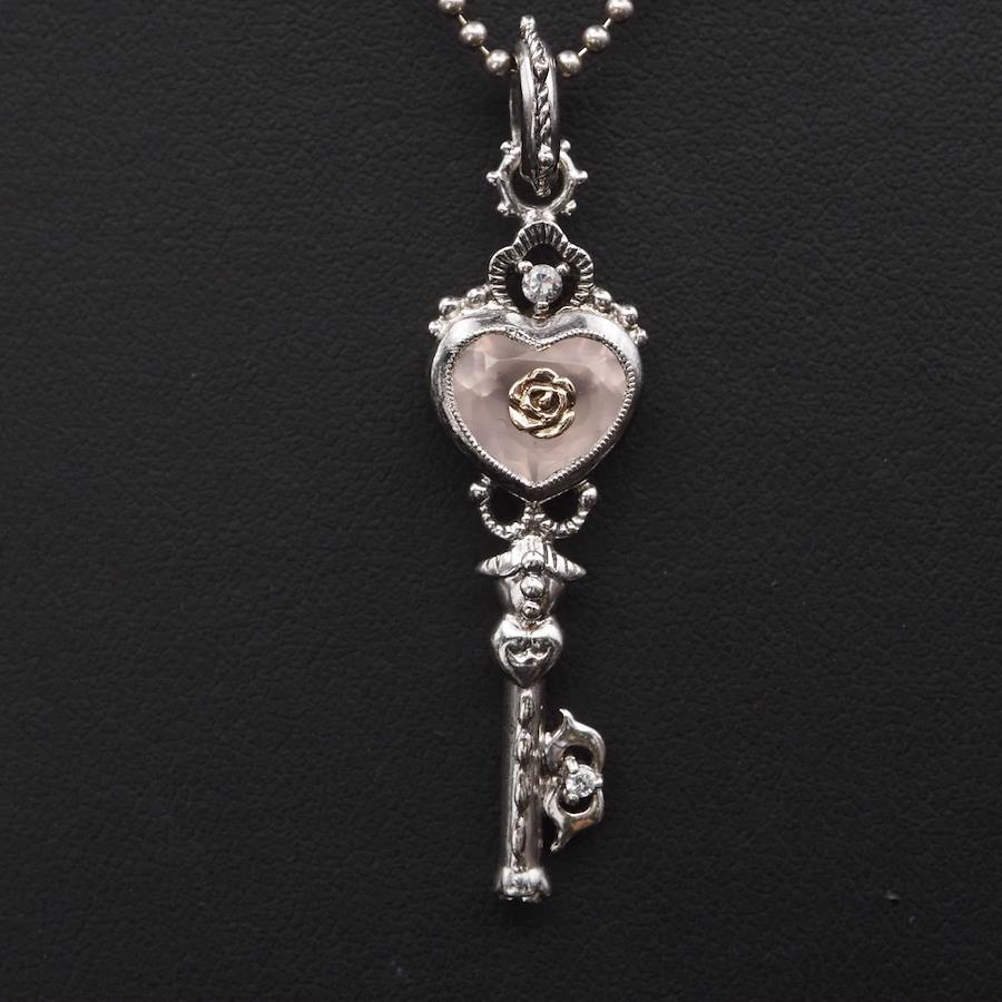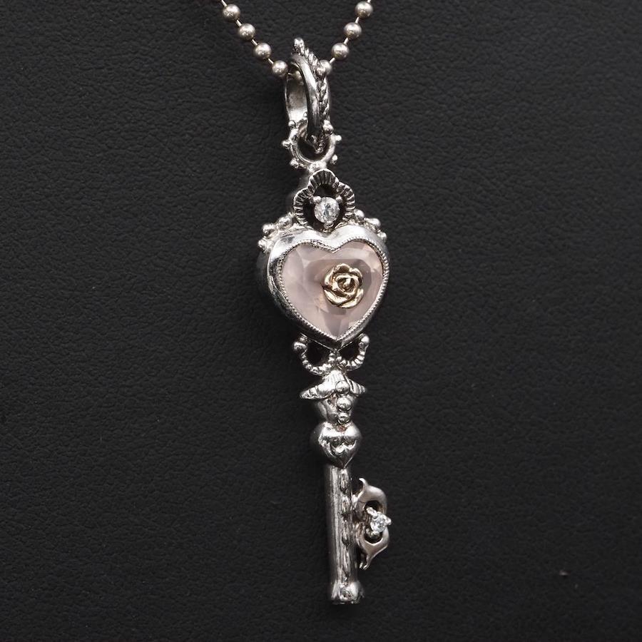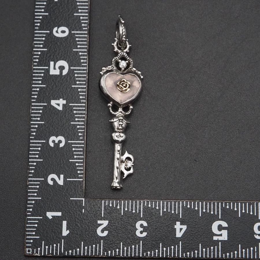 F123 Rose Quartz Diamond-Like 210K (5K) 925 Stamped Pendant Top with Key Design, Silver and Gold Combination Charm Head