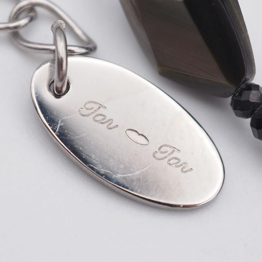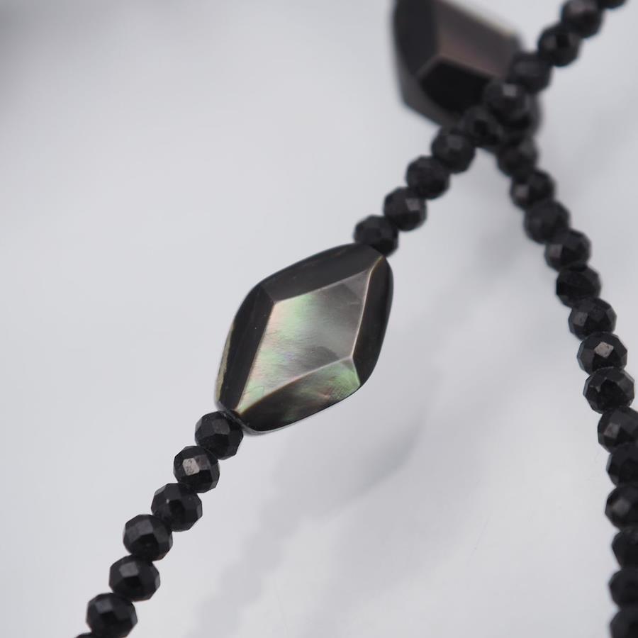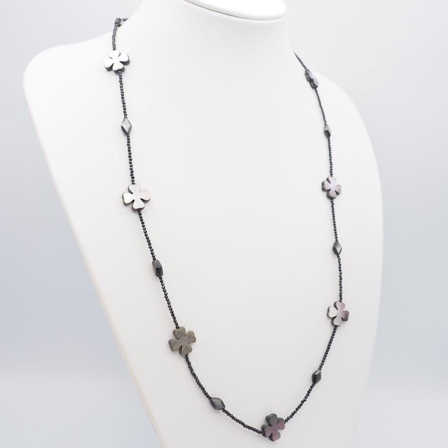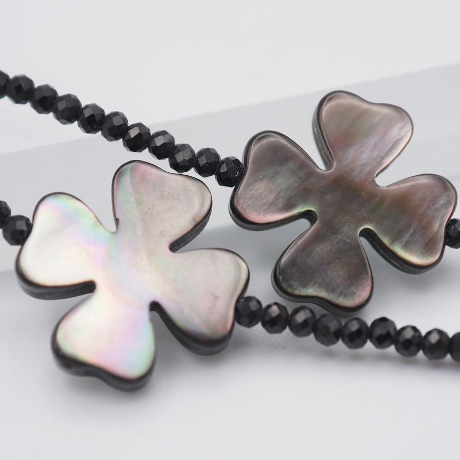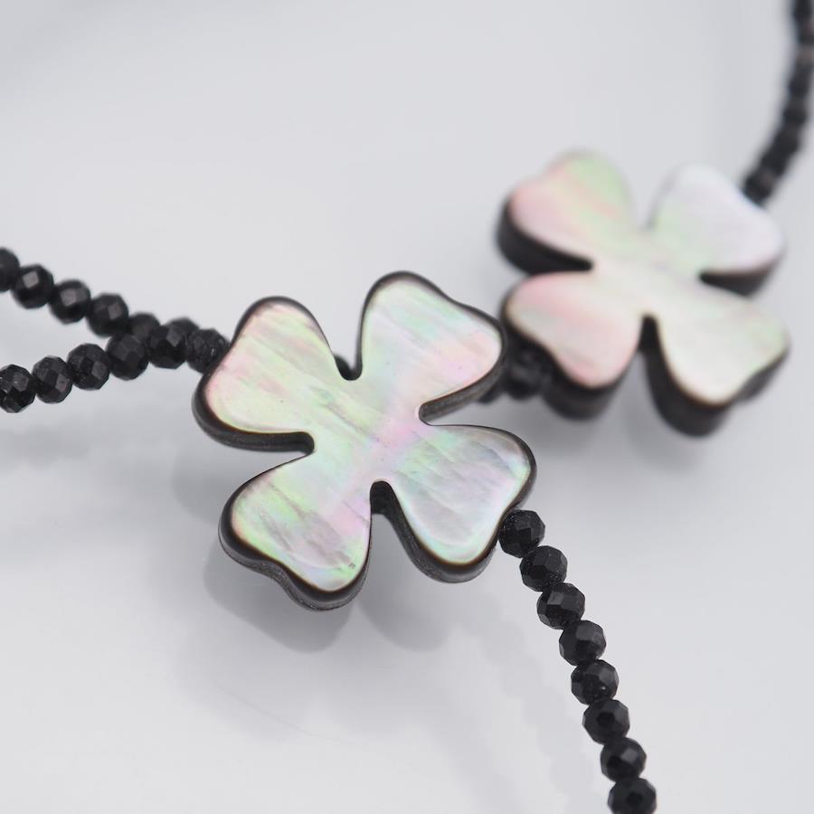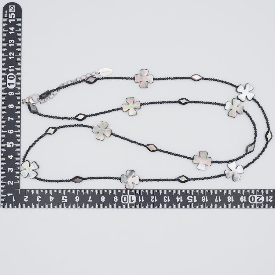 F386 Shell and Onyx Long Necklace with JanJan Engraving, Clover Design, Silver