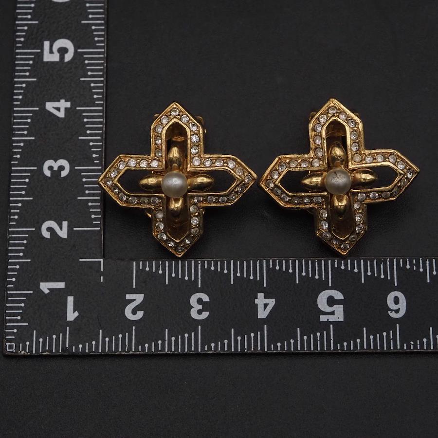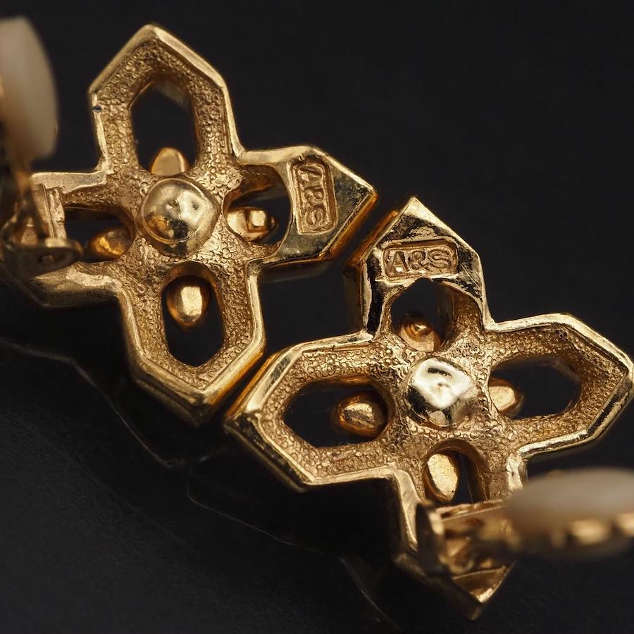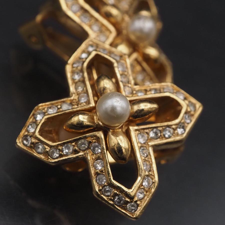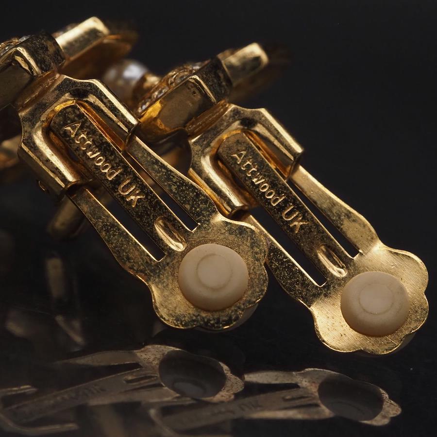 F889 A&S Attwood and Sawyer Earrings, Faux Pearl and Rhinestone, Gold Design