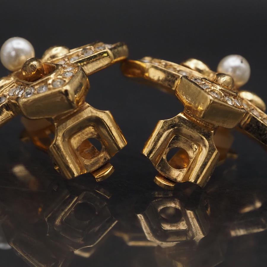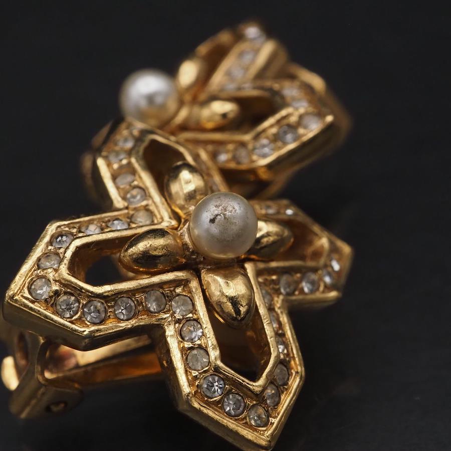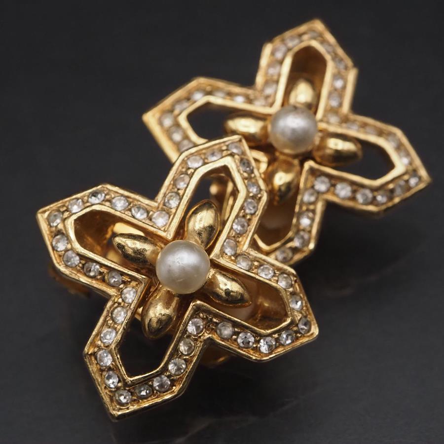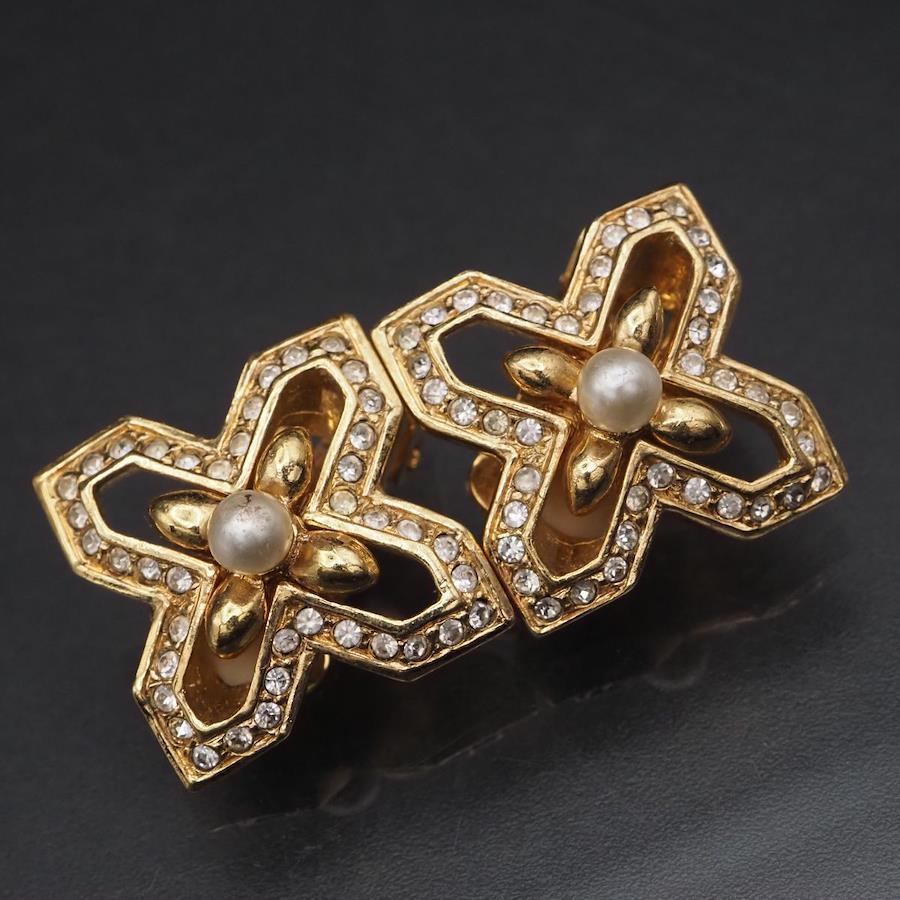 F889 A&S Attwood and Sawyer Earrings, Faux Pearl and Rhinestone, Gold Design