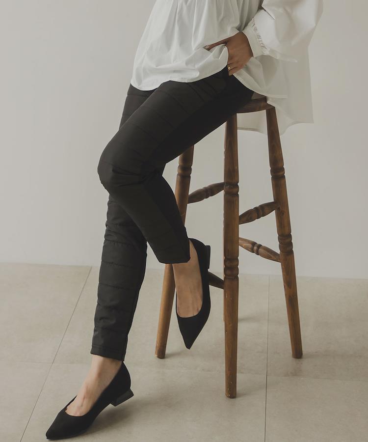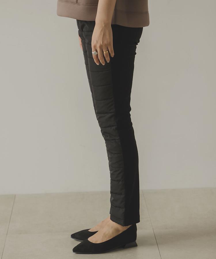 <きれいめお出かけスタイルからアウトドアシーンまで>寒さに無敵なあったかパンツが登場【ディティール】暖かさとデザイン性を両立させたフェイクダウンパンツ。前身は軽さと保温性を兼ね備えた中綿キルティングデザイン。「暖かさだけでなく、着ぶくれしない美しいシルエットも!」という欲張りな希望も叶えてくれる後身デザインもポイント!ストレッチ性抜群の素材に裏起毛加工を施し、履いた瞬間から暖か◎ウエストゴム仕様でストレスフリーなのも推しポイントです。スティックパンツに近いシルエットなので、きれいめにも着られて大人女子にもぴったり。ルームウェア、お出かけ、アウトドア、オフィスカジュアル…などトップス次第でどんなシーンにも使える万能極暖パンツです。【スタイリング】パーカーやざっくりニット+スニーカーで大人カジュアルに、ジャケットやシャツ+パンプスできれいめに、トレンドライクな太ブーツインなどシーンに合わせて様々なテイストをお楽しみいただけます。**********************透け感:なし※アイボリーは淡色のインナーをおススメします。裏地:なし伸縮性:ウエスト、後ろ身頃あり光沢感:なし生地の厚さ:厚手**********************《生産国》中国
