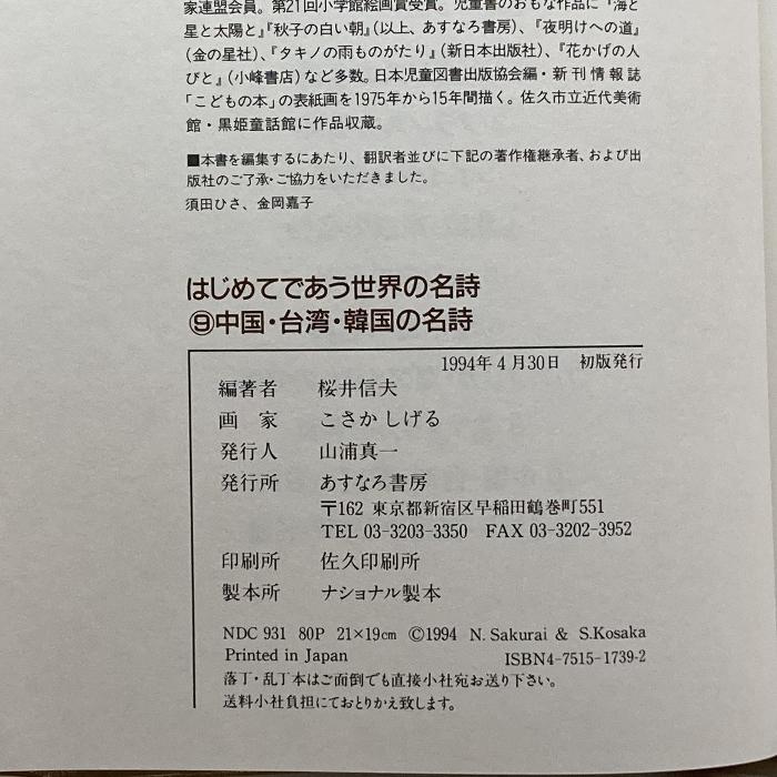 商品名:中国・台湾・韓国の名詩 (はじめてであう世界の名詩) あすなろ書房 桜井 信夫