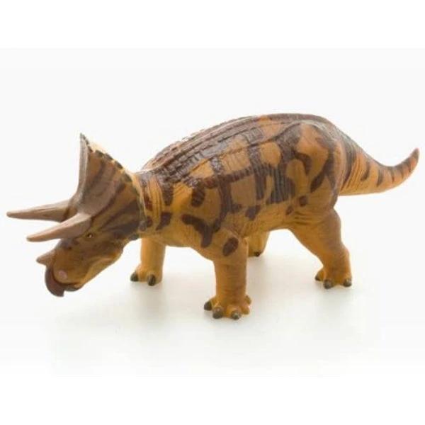フェバリット トリケラトプスビニールモデル ブラウン FD-310 大迫力の大きさの軽くて丈夫なビニール製のトリケラトプス。下からにらみつけるような姿勢が印象的。力強いイメージのブラウンカラーバージョンはトリケラトプスの重量級の強さをより引き出しています。小さなお子様が触れても大丈夫なビニール素材を使用しているため、リビングや子ども部屋に安心して置いていただける商品です。恐竜ファンのお子様からそうでないお子様まで楽しく遊んでいただけます。