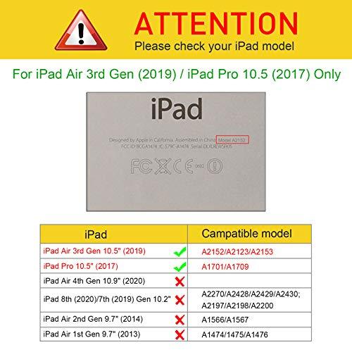 【対応機種】 iPad Air 3 (第三世代) 10.5インチ 2019 (モデル番号:A2152 / A2123 / A2153)、iPad Pro 10.5インチ2017 (モデル番号:A1701 / A1709) 専用スマートケース、カバー。 ご注意:iPad Air 1/ 2、iPad Pro 9.7、iPad Pro 11、またはその他のモデルには対応していません、ご注文の際に、お手元機種の背面にあるモデル番号を確認をお願い致します。