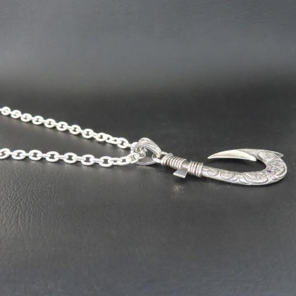 【モチーフ】 釣り針、フィッシュフック、波、スクロール、海亀、ホヌ ◆モチーフ意味 フィッシュフック(釣り針)のモチーフには、魚を釣り上げることから 「幸せを釣り上げる」。 また、魚が釣り針に掛かると逃げられないことから、「大切な人と離れない」 「幸運を逃がさない」「恋愛成就」「命を守ってくれる」と言った意味があります。 釣り針部分に彫り込んだスクロールは寄せては返す波で永遠を表しています。 ストーンが留まる、海亀(ホヌ)は海の守り神。幸運・金運を運んでくると言われています。 バチカン部分のマイレはハワイの結婚式で新郎と新婦の手をマイレのレイで結び「神聖なる結びつき」を表現します。 ◆商品名 釣り針リング(PDT-276) ◆素材 シルバー925 スターリングシルバー ◆ペンダント寸法 縦50mm×横22mm ◆ストーン 直径2.0mm 下記の中からお好みの天然石・誕生石をお付け致します。 ・ガーネット ・ロードライトガーネット ・アメジスト ・アクアマリン ・ブラックダイヤモンド ・エメラルド ・ブルームーンストーン ・ルビー ・ペリドット ・サファイア ・アイオライト ・ピンクトルマリン ・シトリン ・ブルートパーズ ・タンザナイト ・オニキス ・ラピスラズリ ・ターコイズ ◆チェーン長さ 35~60cmの中からお好みの長さをお選び下さい。 4.0mmシルバー925小豆チェーン ◆付属品 ジュエリーBOX、ショップ袋、品質保証書 *プレゼント梱包出来ます ◆実店舗 JR帯広駅より徒歩5分の場所にある2012年オープンのフラッグシップショップ。 ジュエリー工房を併設し、常駐する職人自らと打ち合わせも可能なため、修理や加工、お客様のご希望に沿ったジュエリーもお作りすることが可能です。 ◆オススメ使用シーン ・様々な贈り物に プレゼント 贈り物 誕生日 誕プレ 誕生日プレゼント バースデー バースデイ 御祝 御祝い お祝い 母の日 父の日 クリスマス クリスマスプレゼント Xmas 春夏秋冬 成人 成人式 卒業 卒業式 進学 就職 入学 金婚式 銀婚式 出産 結婚 開店 開業 定年退職 退職 移動 転勤 バレンタイン バレンタインデー バレンタインデイホワイトデー ホワイトデイ ごほうび ご褒美 御褒美 ・想いを込めて ありがとう 感謝 ごめんなさい 許して ごめんね よろしく おめでとう おめでとうございます 仲直り ・こんな方に 自分 彼女 彼氏 大切な人 大切な方 お父さん お父様 父親 親父 父 お母さん お母様 母親 母 兄弟 姉妹 子供 おばあちゃん 祖母 おじいちゃん 祖父 奥さん 妻 旦那 旦那さん 先生 生徒 職場 先輩 後輩 上司 部下 同僚 友達 友人