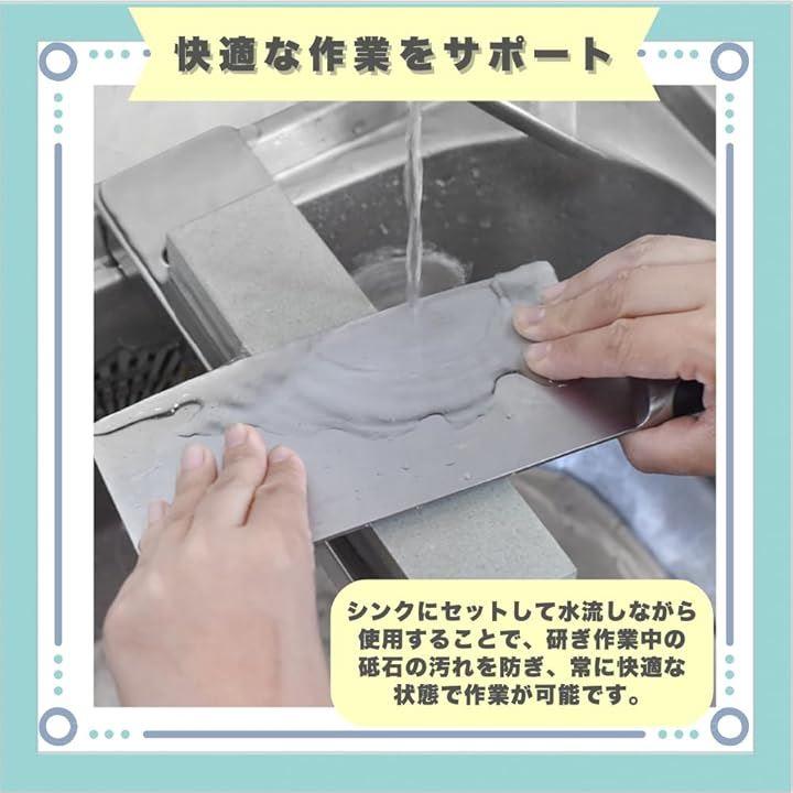 「快適な作業をサポート」シンクにセットして水流しながら使用することで、研ぎ作業中の砥石の汚れを防ぎ、常に快適な状態で作業が可能です。
