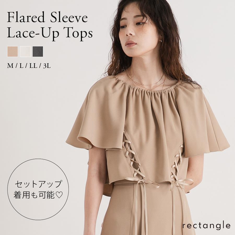 オフショルとしても着用可能なフレアスリーブレースアップトップス