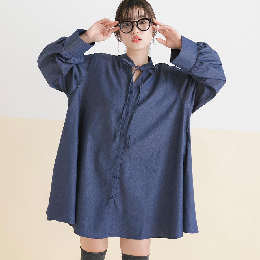 シンプルながらもふわっと揺れるシルエットが魅力のシャツワンピース。