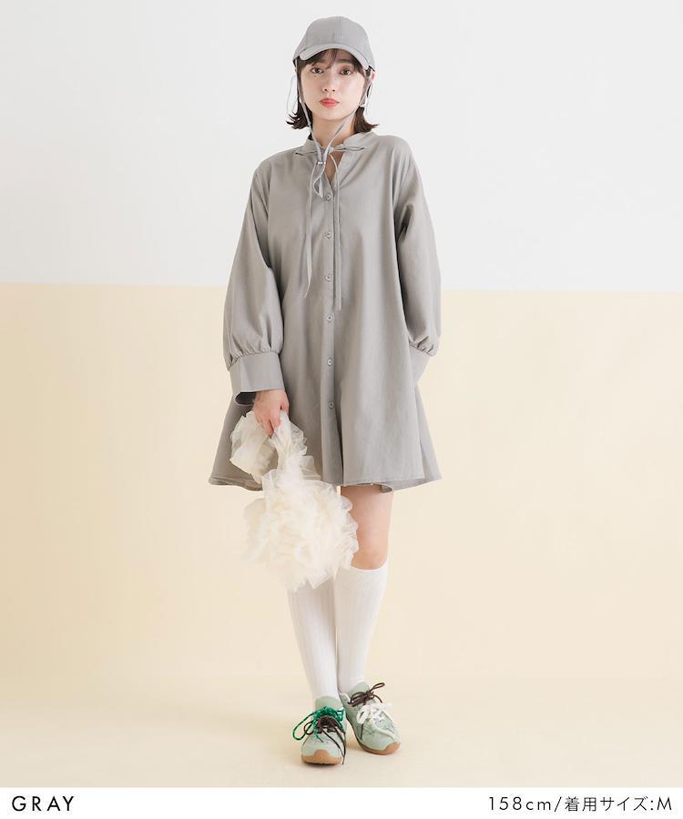 シンプルながらもふわっと揺れるシルエットが魅力のシャツワンピース。