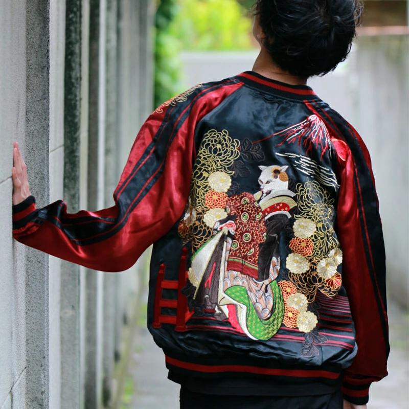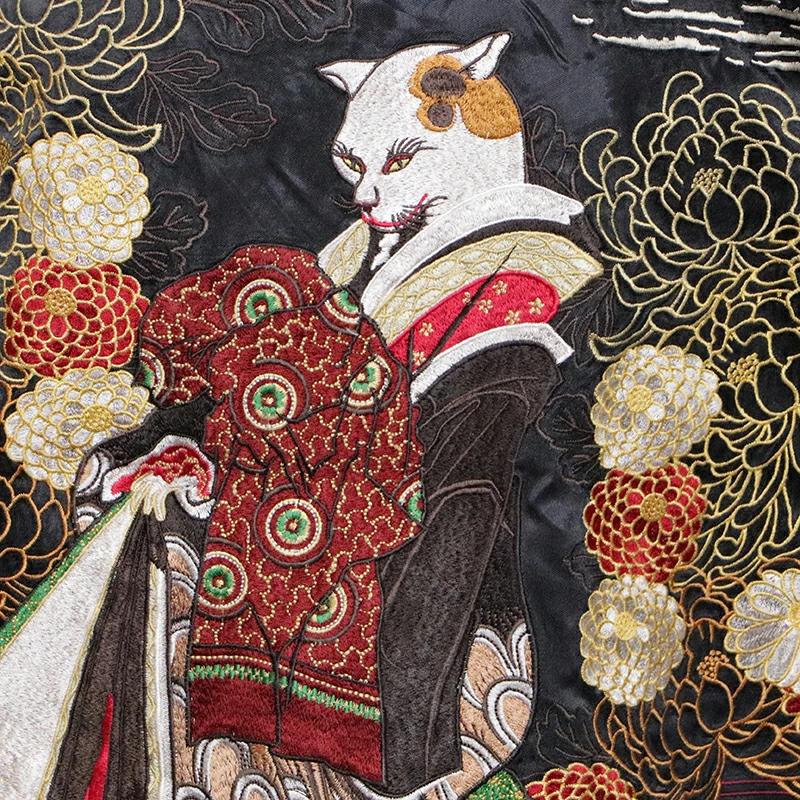 妖しい雰囲気のあるユニークな化猫花魁のスカジャンです。