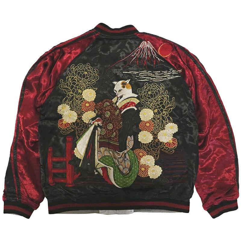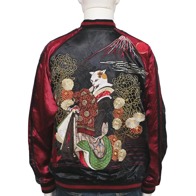 妖しい雰囲気のあるユニークな化猫花魁のスカジャンです。
