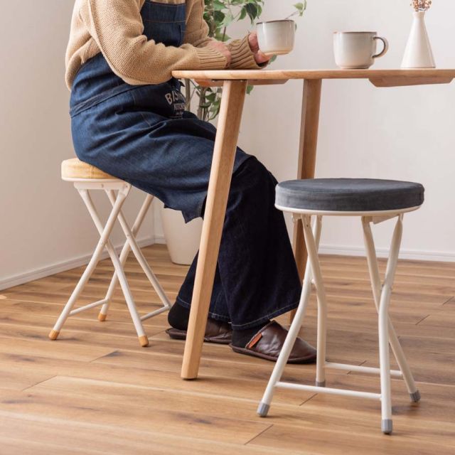 Folding Chair/Stool, Stylish, Round, Lightweight, Velour-like Fabric, Cushioned Seat, Height 49cm, Diameter 30cm, Suitable for Guests, Dining Room, Work, Kitchen