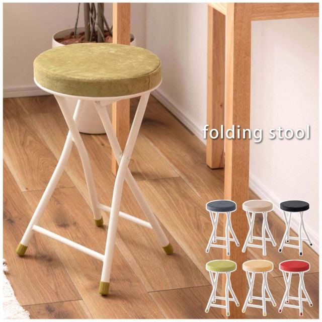 スツール丸スツール腰掛け椅子北欧カジュアルシンプル隙間収納コンパクト折りたたみスツールフォールディングチェアカウンターチェアバーチェアパソコンチェアコンパクトPCチェアクッションロンダキャップ付きロック付スチールレッドイエローベージュグリーングレーブラック