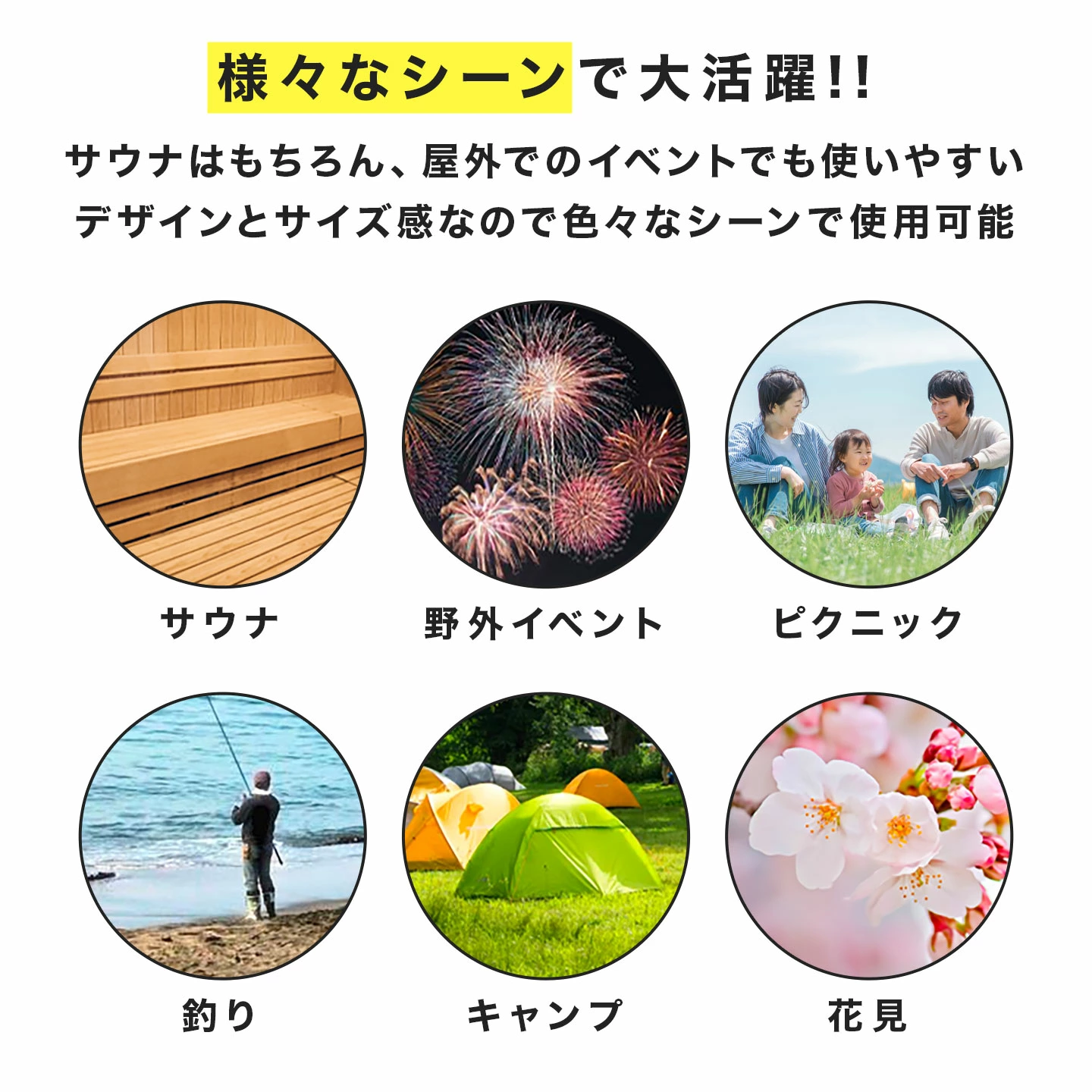 サウナに入る時、共同のマットの上にもう1枚欲しい・・・そんな方にオススメ★さらに、持ち運びに使ったり、ボトル類の持ち運びにもおすすめなメッシュポーチもついてきます。サウナの他にもあらゆるシーンで使える便利なマットです!