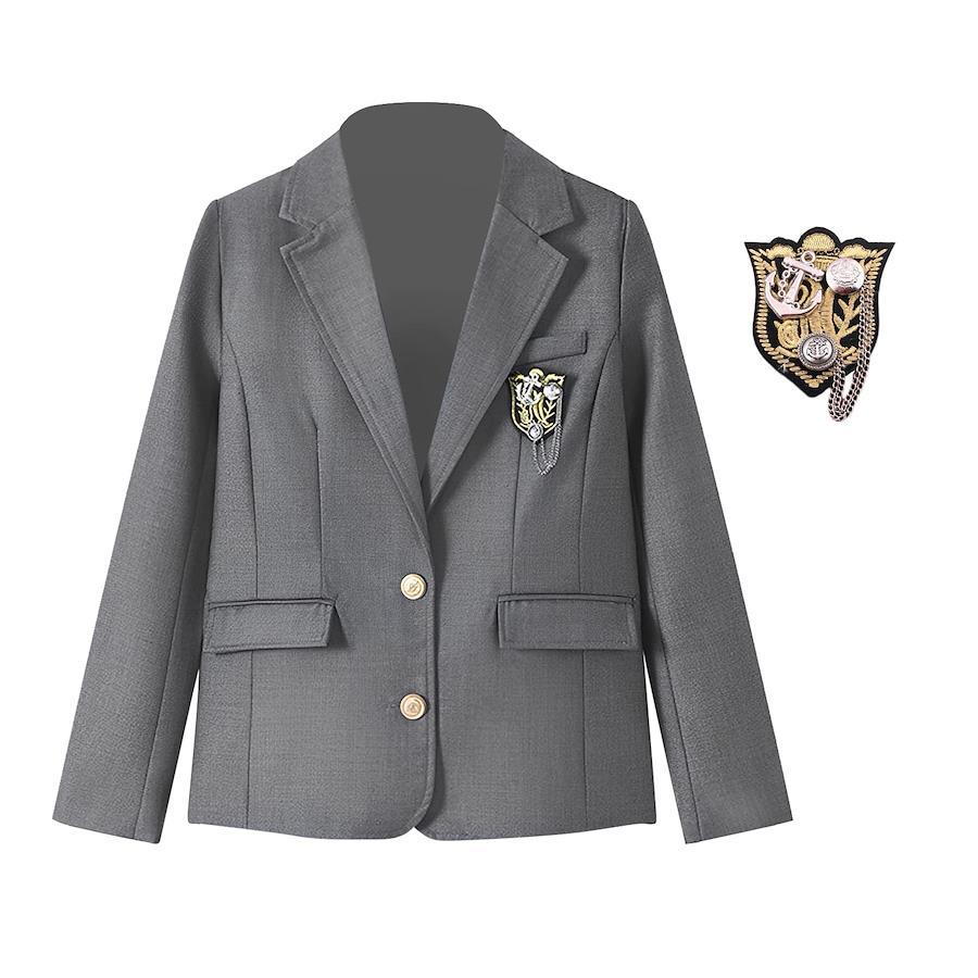 [Formemory] 本格制服 コスプレ スクールブレザー ジャケット 制服 ワッペン付き 2点セット JKコスプレ 女子高生 V首 コスプレ 卒業式 入学式 コスプレ 制服 コート JKコスプレ コスチューム クラスの服 學院風 イギリス風 高校制服 黒・紺・茶・灰・白の5色対応 長袖 高校生 通学 通勤 学園祭 文化祭 イベント 仮装 (L, グレー)