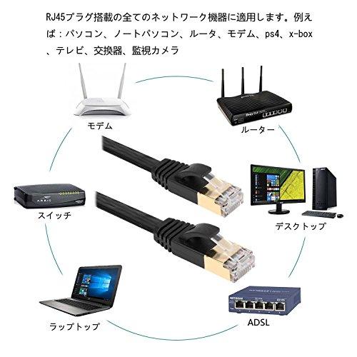 Cat6 の2.4倍の伝送帯域である600MHZに対応します。Cat 7ネットワークケーブルはCat6 / Cat5 / Cat5eイーサネットケーブルと互換性があります。両端はRJ45コネクタで特に設定なし、接続は簡単、ルータ、スイッチ、ハブ、ネッ トワークプリンタ、Xbox、PS2、PS3、PS4、RJ45プラグを搭載したゲームボックス等 に適用します