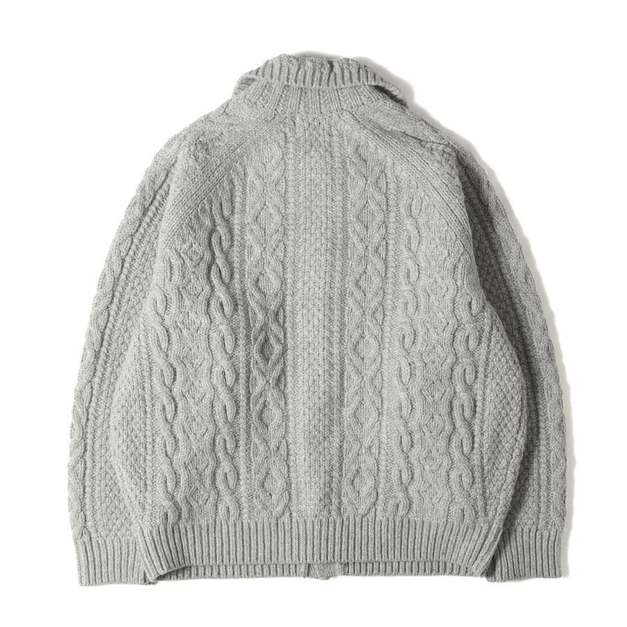 | 商品説明 | ・ウールナイロン混紡ローゲージニット生地 ・ケーブル編み ・フロントウッドボタン ・襟付きデザイン |