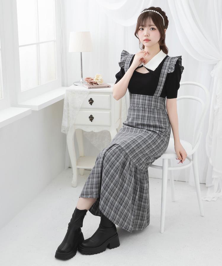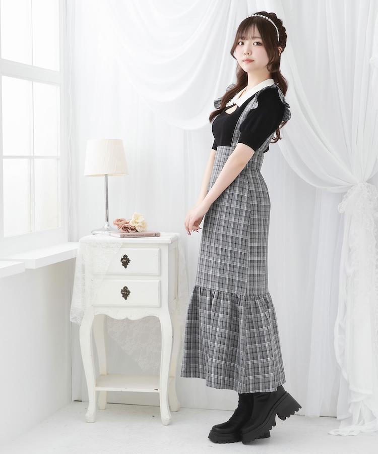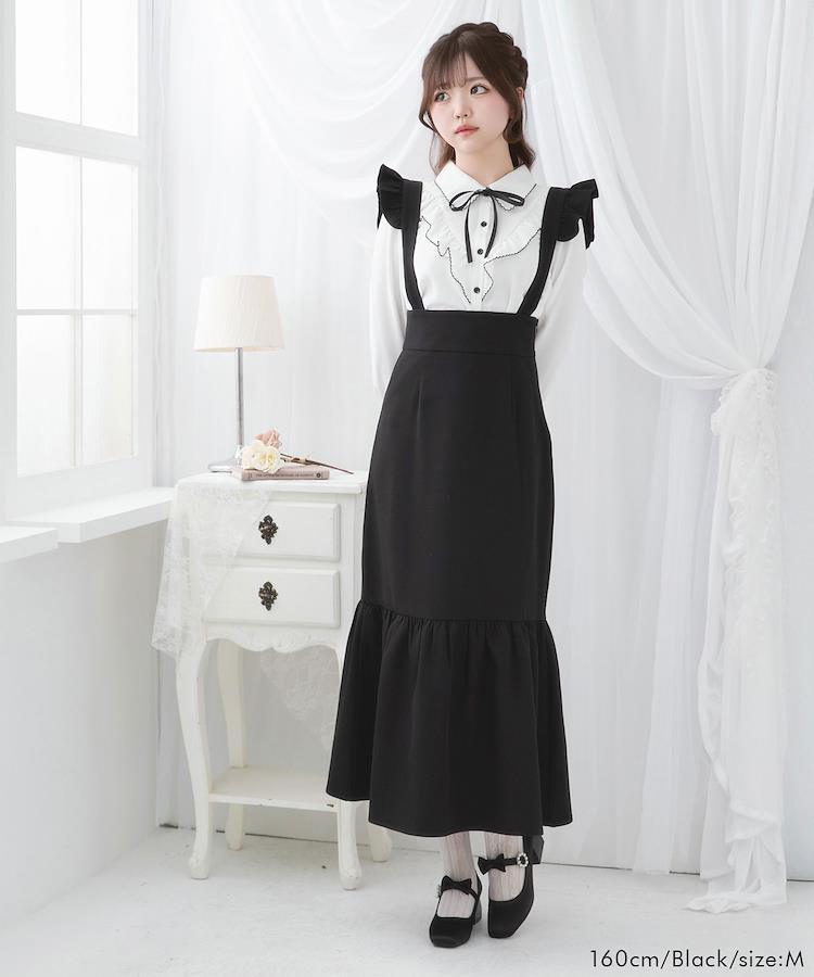 肩フリルがアクセントになった、サスペンダー付きマーメイドジャンスカ♪