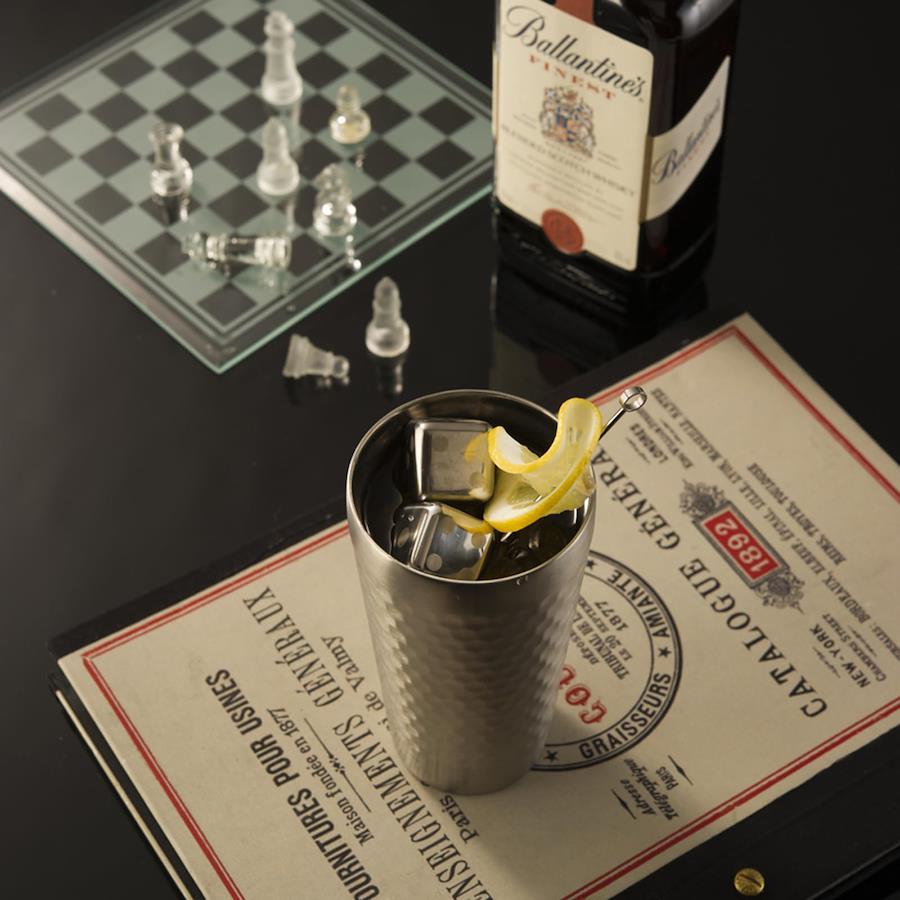 冷凍庫で冷やしておけば氷の代用として使えるステンレス製のアイスキューブ付