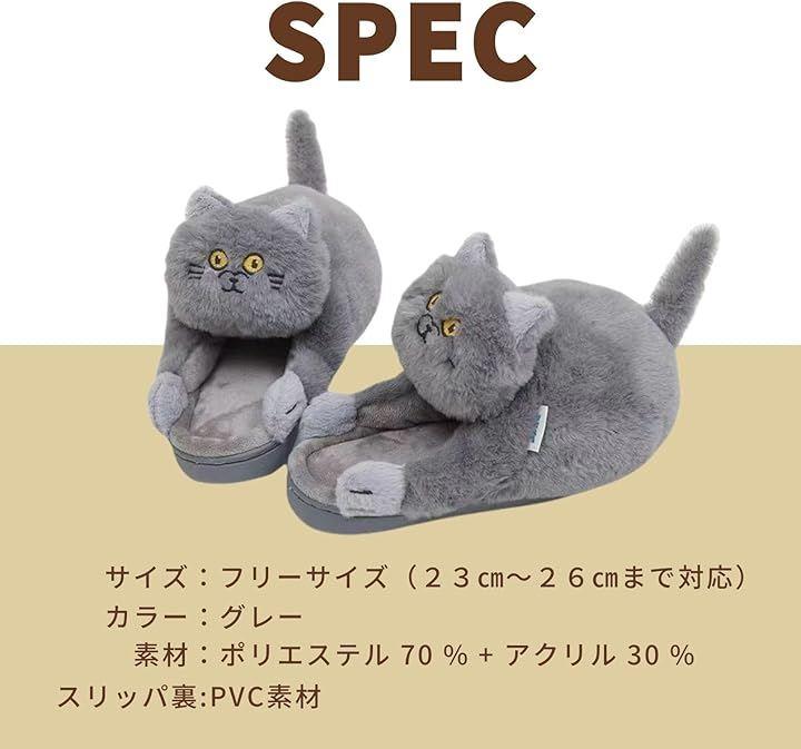 「内容」猫スリッパ「サイズ」23cm~26cm「素材」本体:ポリエステル70%とアクリル30% 底:PVC