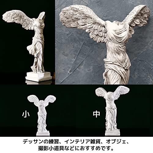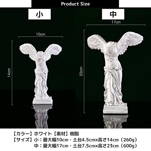 通常1-5営業日で発送:デッサンの練習、インテリア雑貨、オブジェ、撮影小道具などにおすすめの石膏像風レプリカ、勝利の女神「サモトラケのニケ」の樹脂製フィギュアです。高さが14cmの小サイズと23cmの中サイズをご用意しました。リアルな大理石像のような質感の樹脂製フィギュアです。翼の羽一枚一枚やドレスのひだも細かく再現しています。硬質樹脂製ですので丈夫で破損しにくいです。空に向かって翼を広げる優美な姿の勝利の女神サモトラのニケの石膏像です。ルーブル美術館の宝として愛されるニケ像は、闘いの勝利を告げる女神です。インテリアの飾りや勝利を願うお守りにぴったりです。卓上サイズですので机の上でデッサンの練習ができます。インテリアアイテムとしてもおしゃれで、お店のディスプレイにおすすめのオブジェです。勝利の女神ニケは、開店、新築などお祝いにも喜ばれます。【カラー】ホワイト【素材】樹脂【サイズ】小:最大幅10cm・土台4.5cm×高さ14cm、中:最大幅17cm・土台7.5cm×高さ23cm【重量】小:260g、中:600g