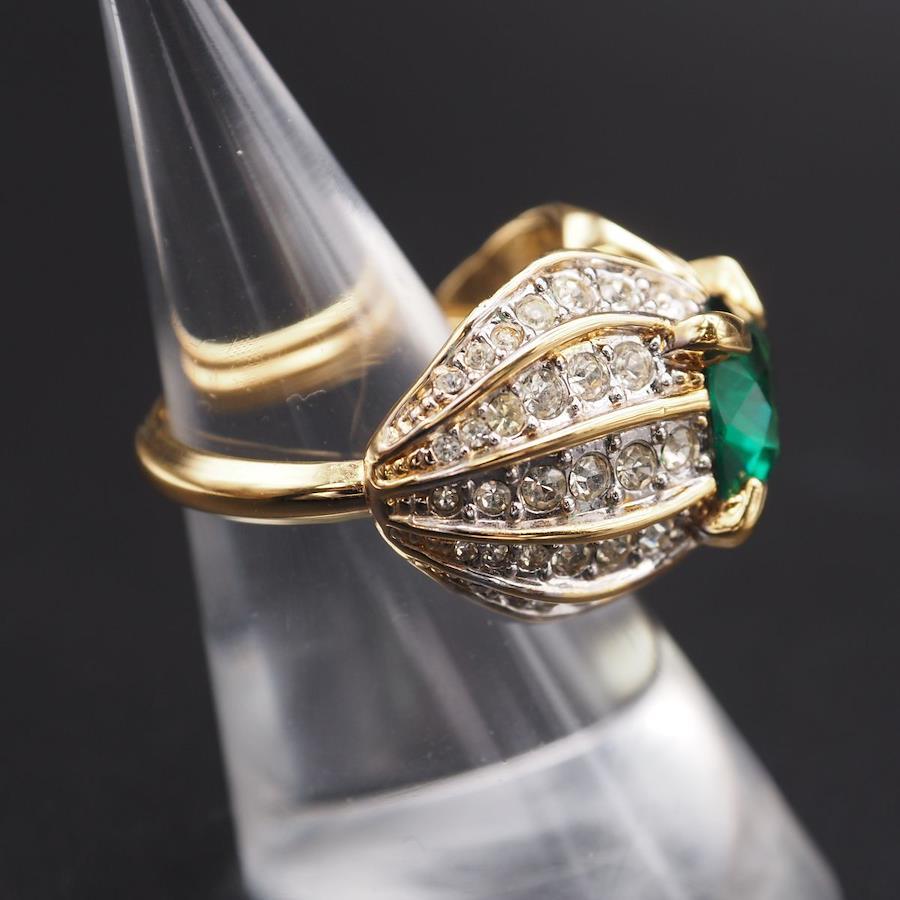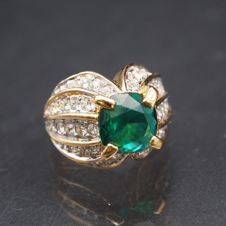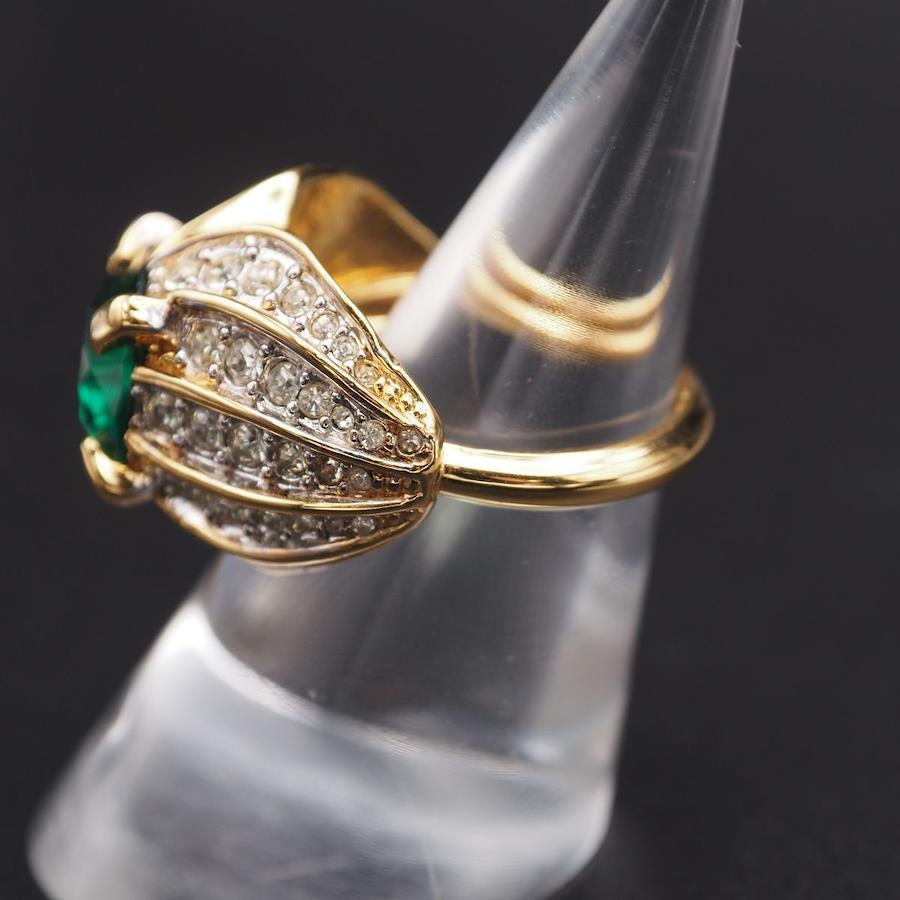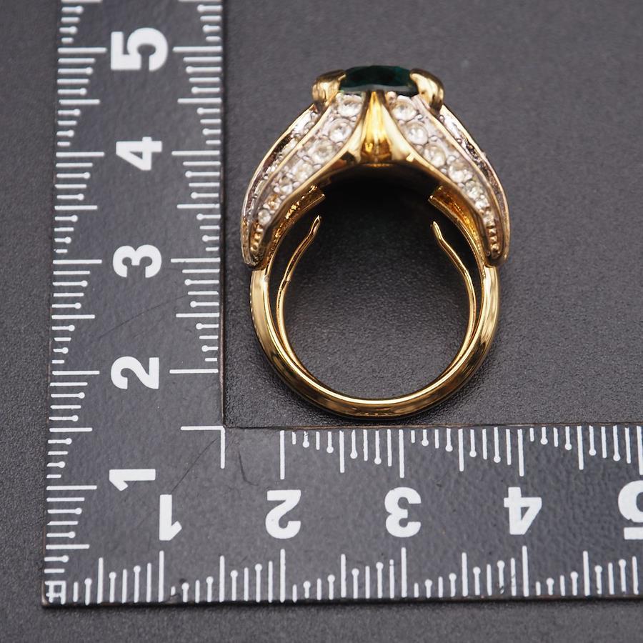 G115 NINA RICH Ring with Emerald-Style Rhinestones, Gold, Size 8