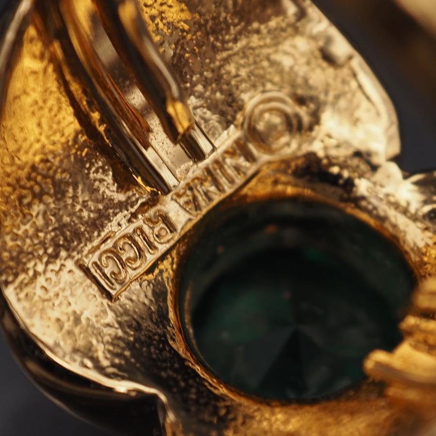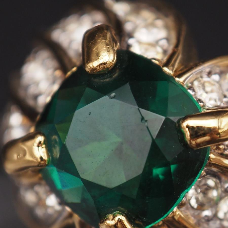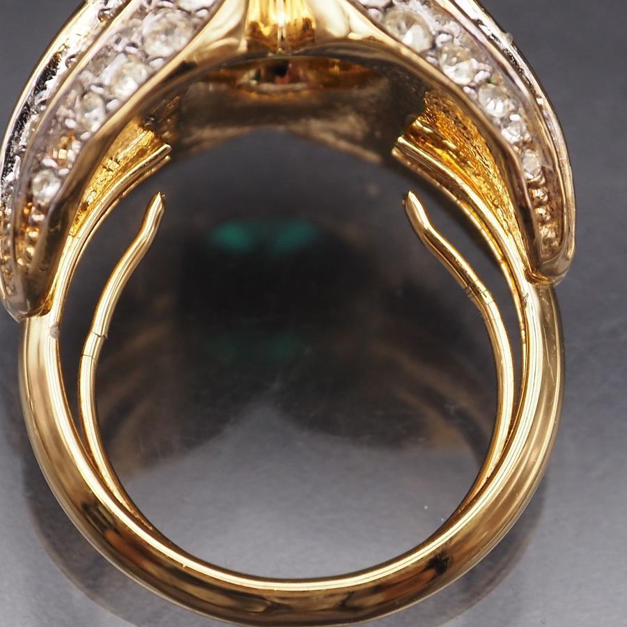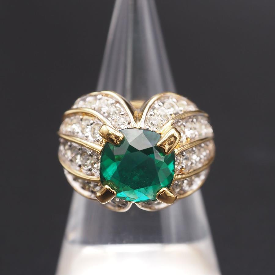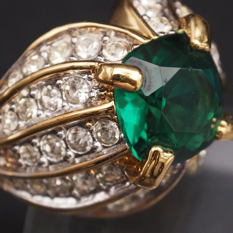 G115 NINA RICH Ring with Emerald-Style Rhinestones, Gold, Size 8