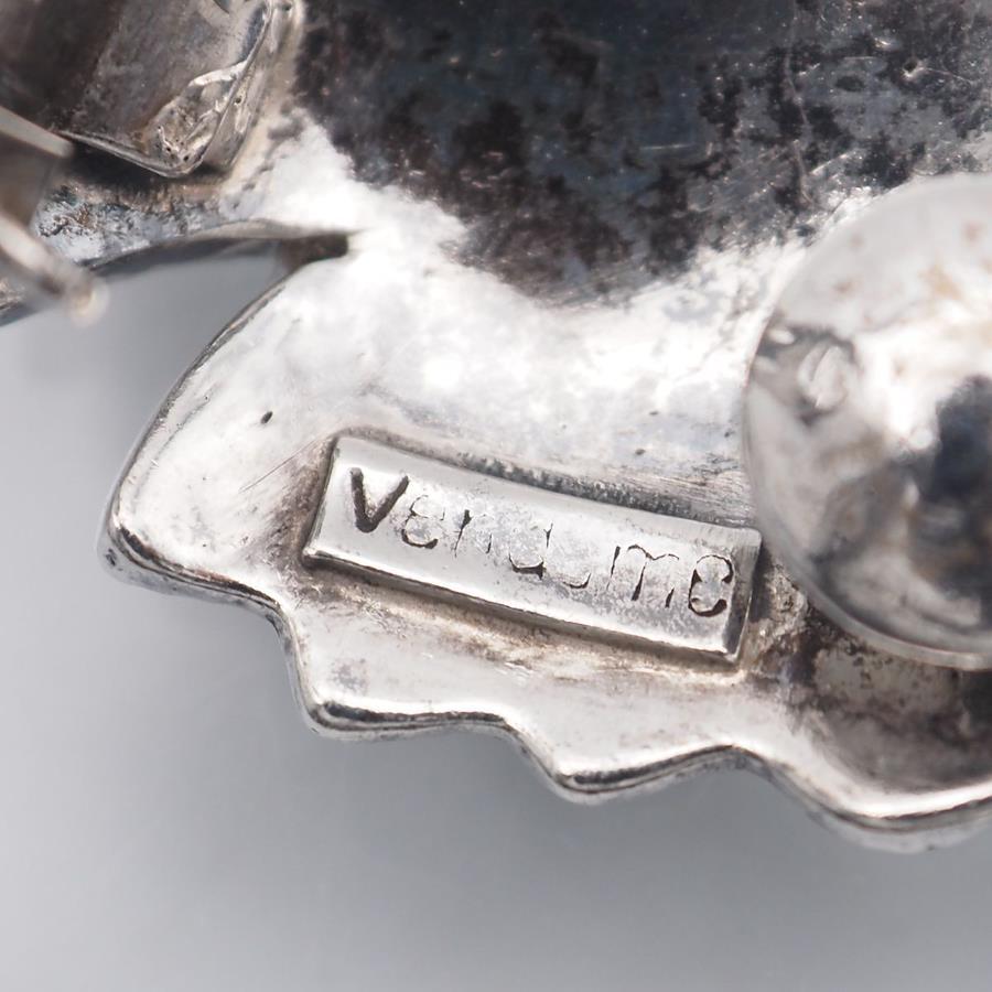 おそらく銀製かと思いますが、刻印が無いため断言できません。画像をたくさん掲載しておりますのでそちらでご確認とご判断をお願いいたします。