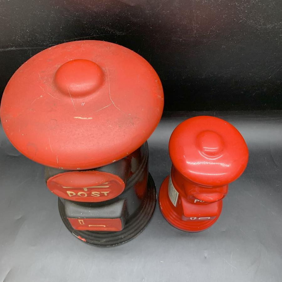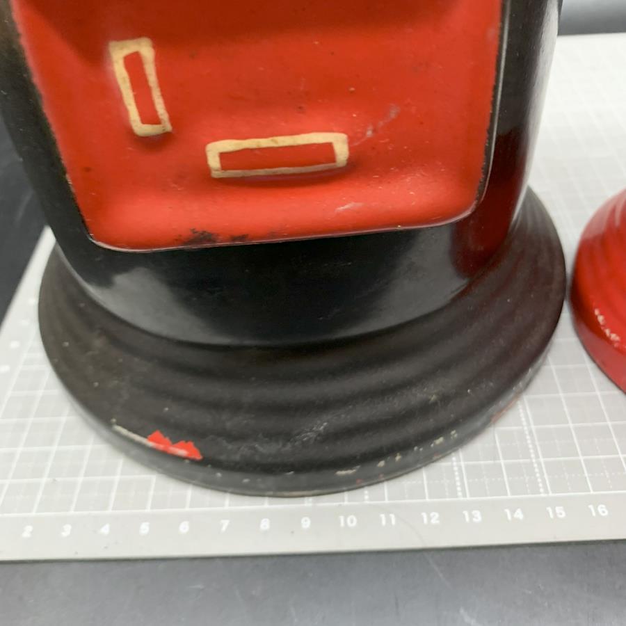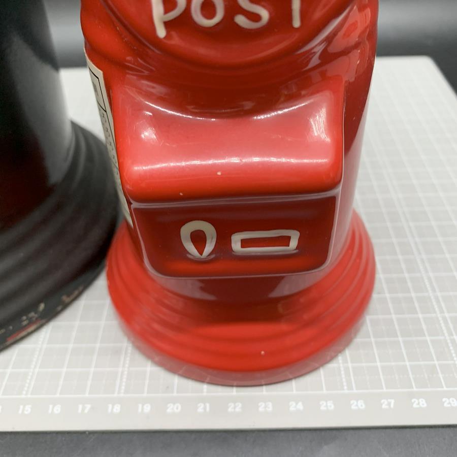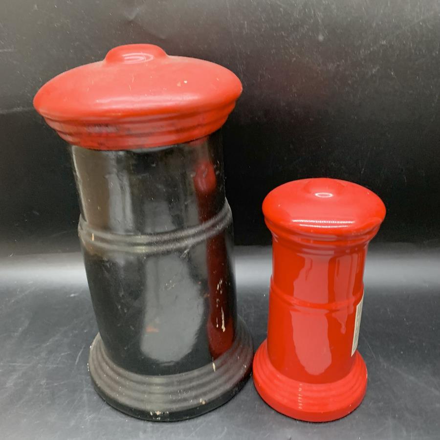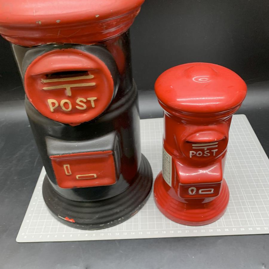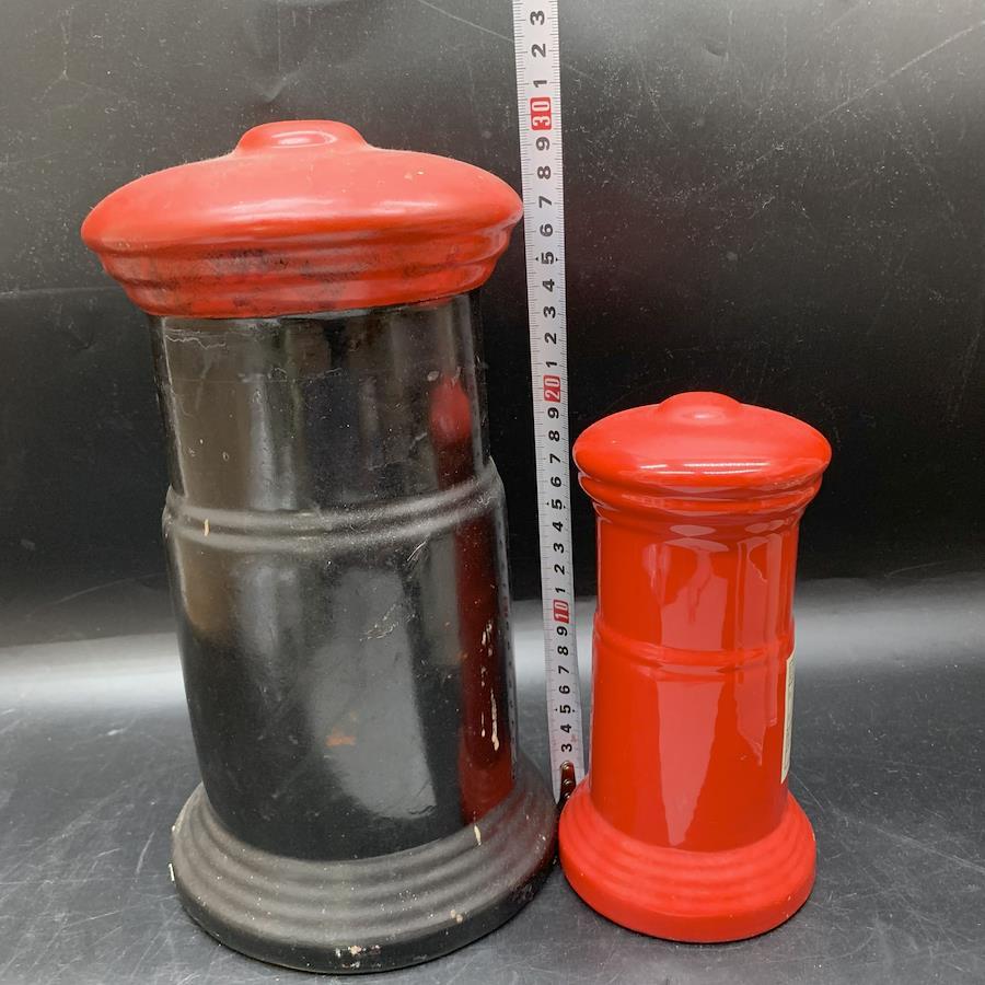 G334 Mailbox Piggy Bank Set of 2: Vintage Red Ceramic Mailbox Piggy Banks, Approximately 30cm and 20cm Tall, Showa Retro, Pottery, Interior Decor