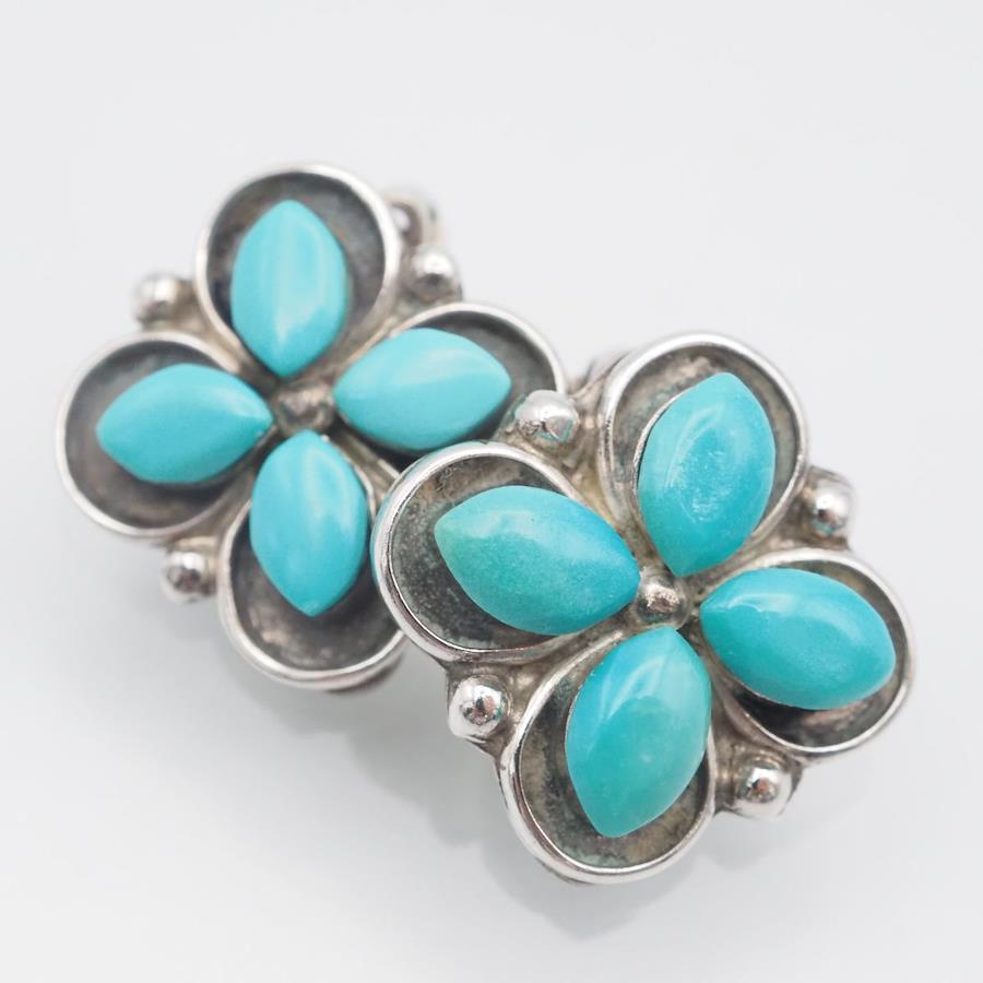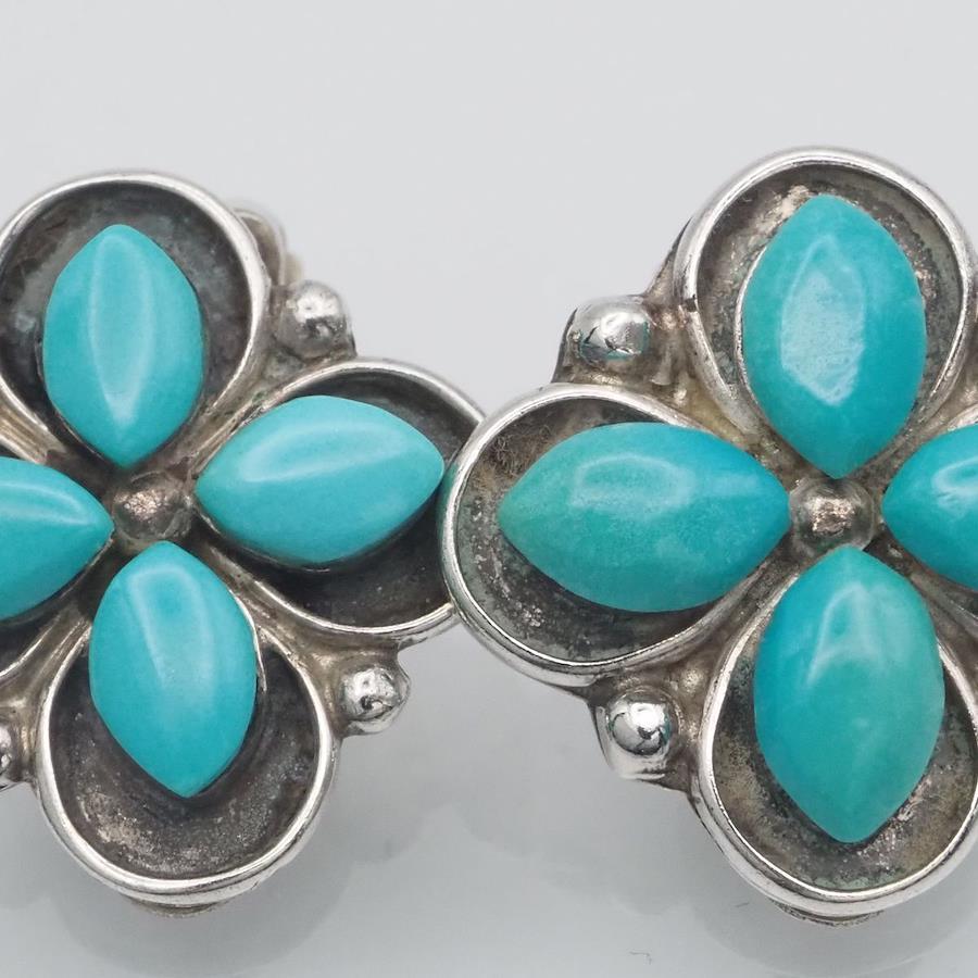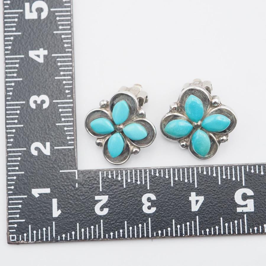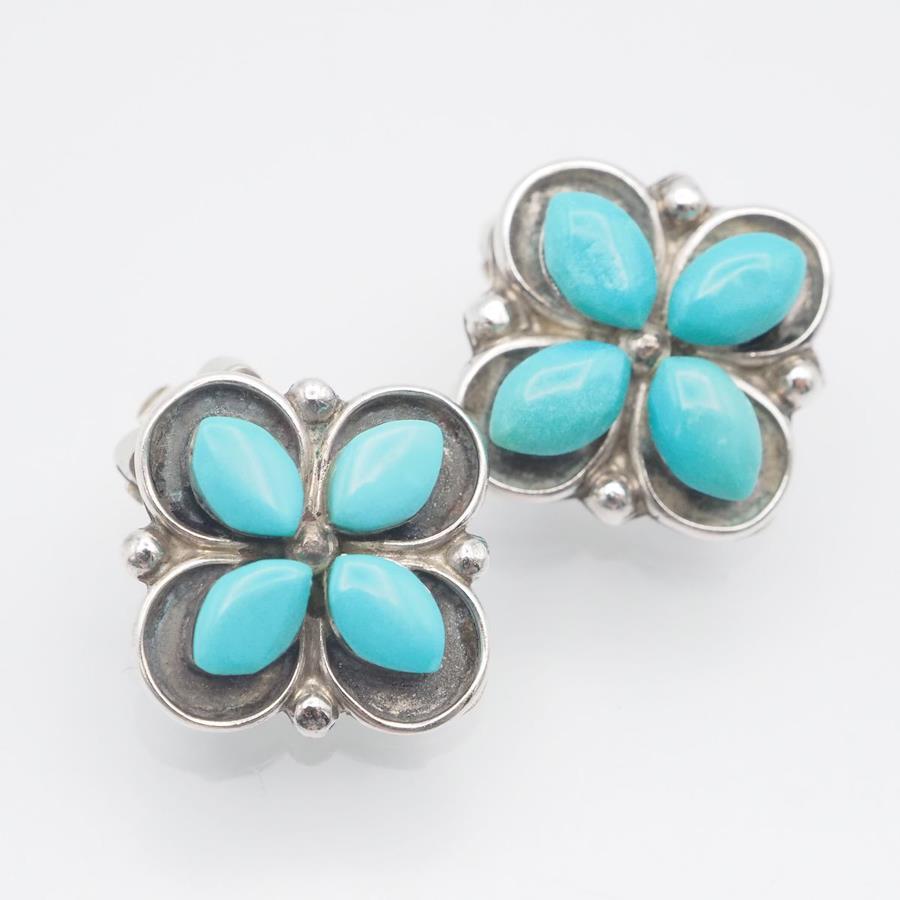 G878 Turquoise Earrings, Stamped with T&NN STERLING, Silver, Indian Jewelry, December Birthstone