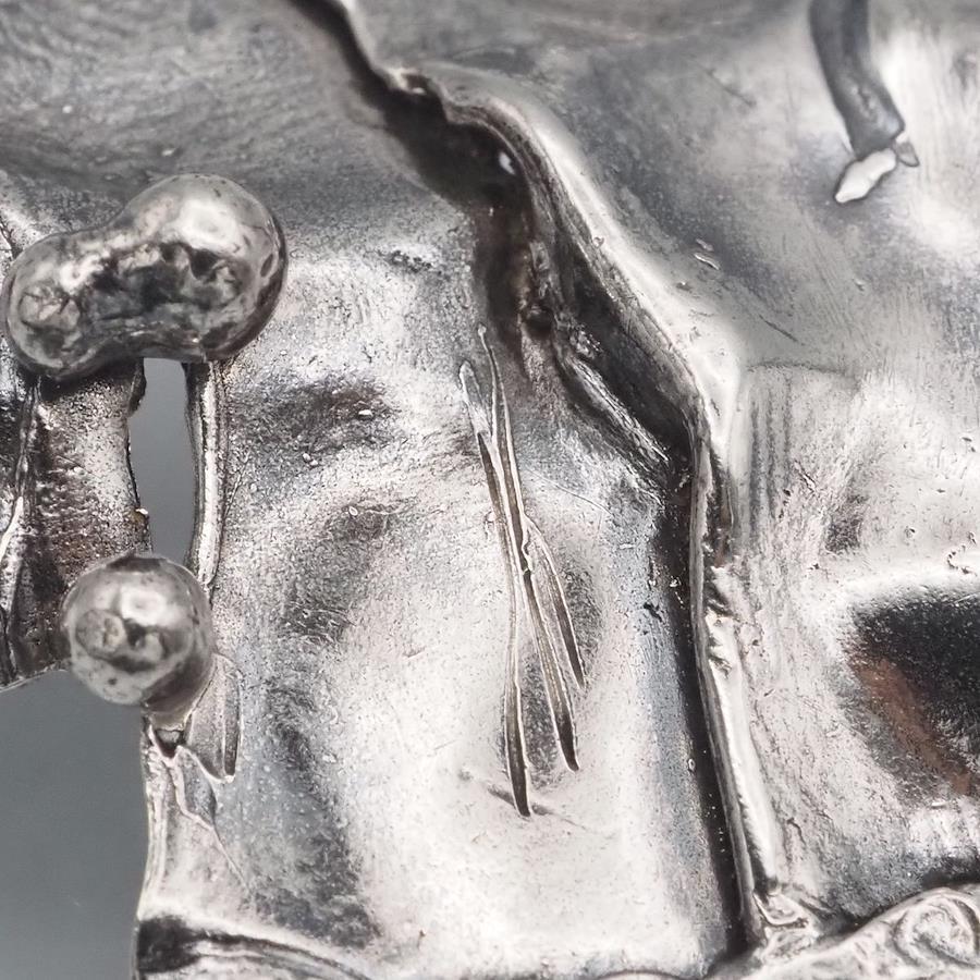 おそらく銀製かと思いますが、刻印が無いため断言できません。画像をたくさん掲載しておりますのでそちらでご確認とご判断をお願いいたします。