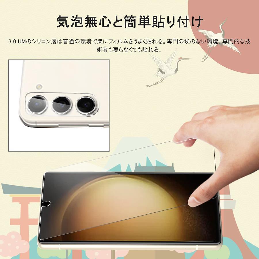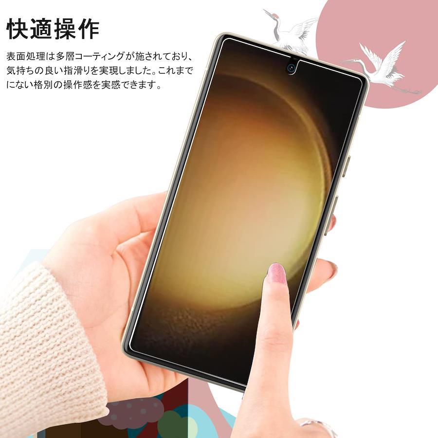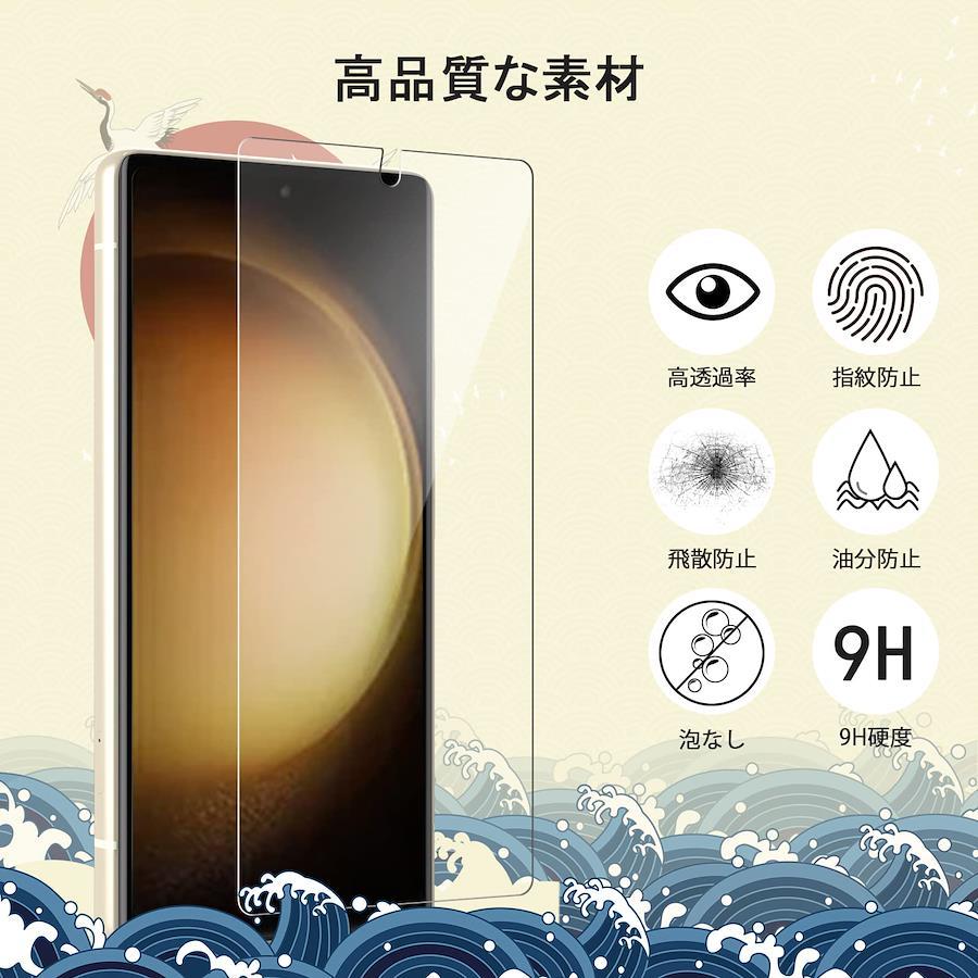 【指紋防止 飛散防止】GALAXY S23 プロ ガラスフィルムは特殊なコーティング加工を施しましたので油や指紋など付いても軽く拭けば汚れはすぐに落ちます。保護フィルムは防爆性のプラスチックの層があり、ガラスが破損した場合、破片が飛ばず安全です。 【一年安心保証】もしあなたが受け取った商品に破損、汚れがあれば、部品がありません、いつでも私たちに連絡してください。新しい商品を無料で送ります。5日間無料で新しい商品を手に入れることができます。【日本旭硝子素材-9H硬度】GALAXY S23 強化ガラス 保護フィルムは日本