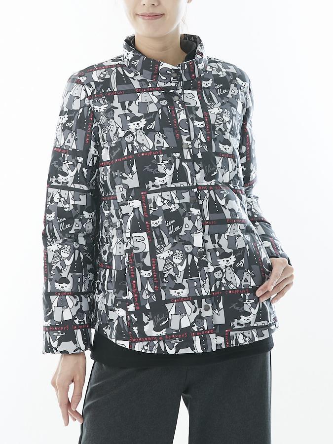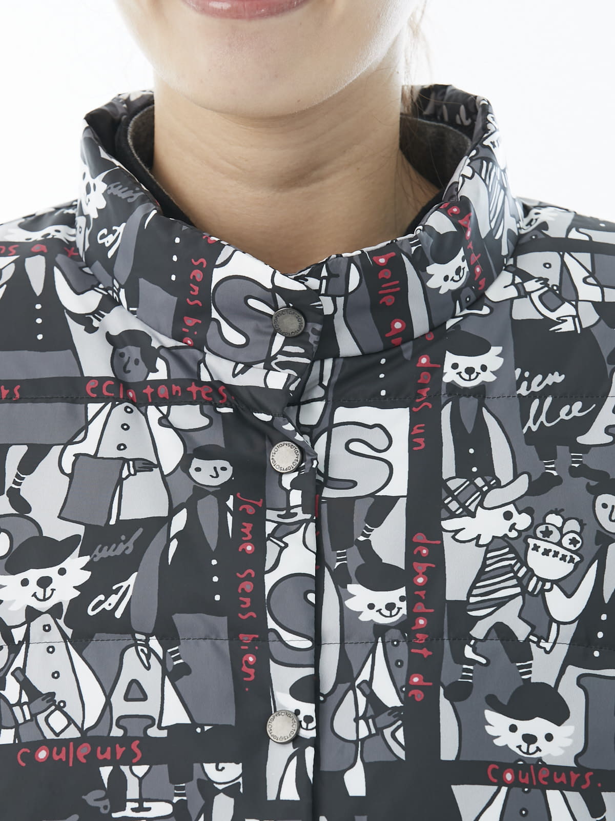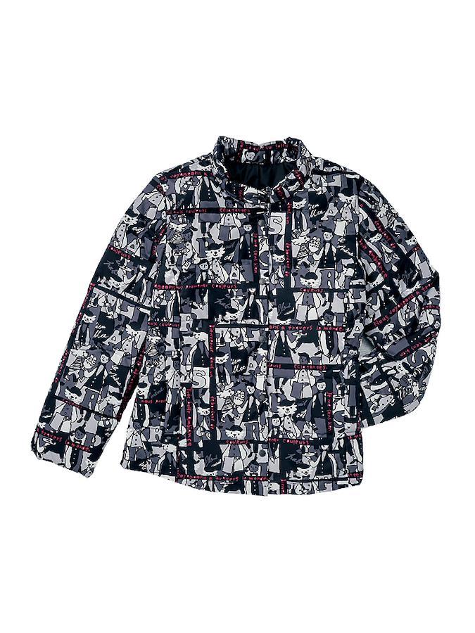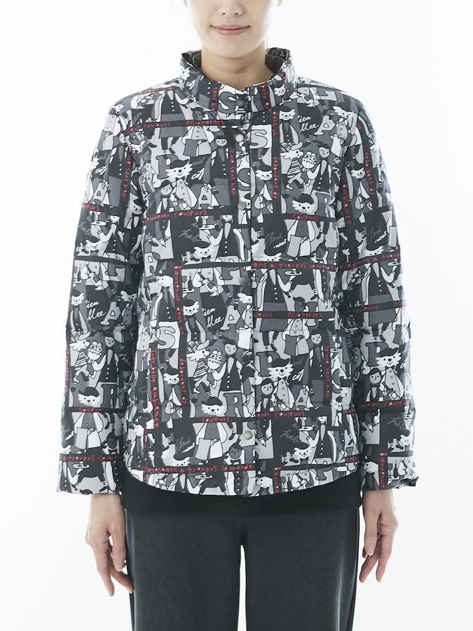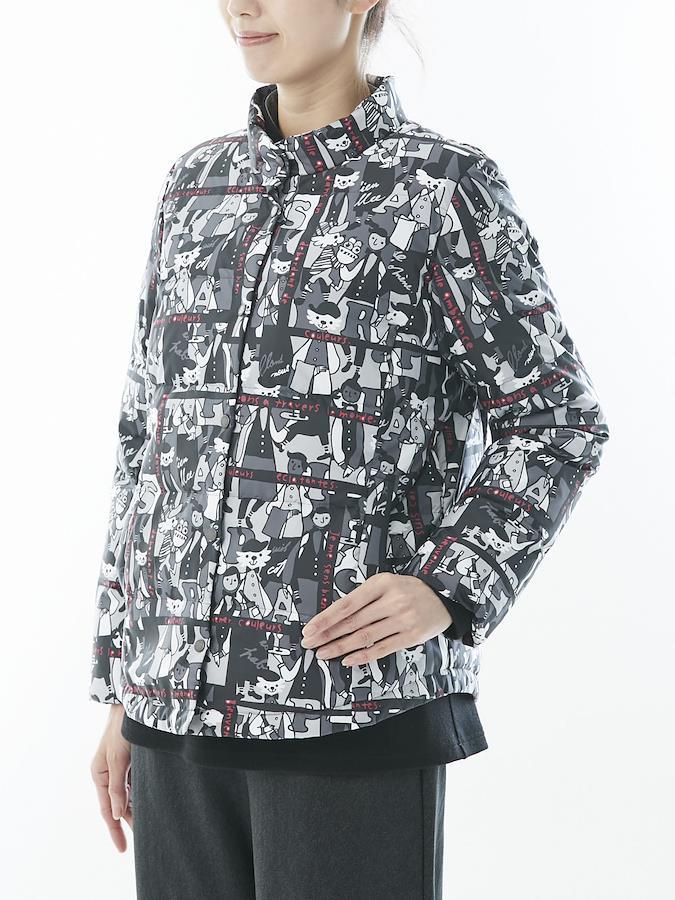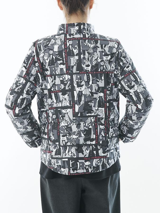 ソフトな風合いのポリエステルタフタをプリント下にしています。ギャルソンとトピィーちゃんをミックスさせた、楽しいプリントです。 (size-40 肩幅41cm バスト114cm 袖丈59cm 着丈63cm) サイズは多少の個体差が生じる可能性があります