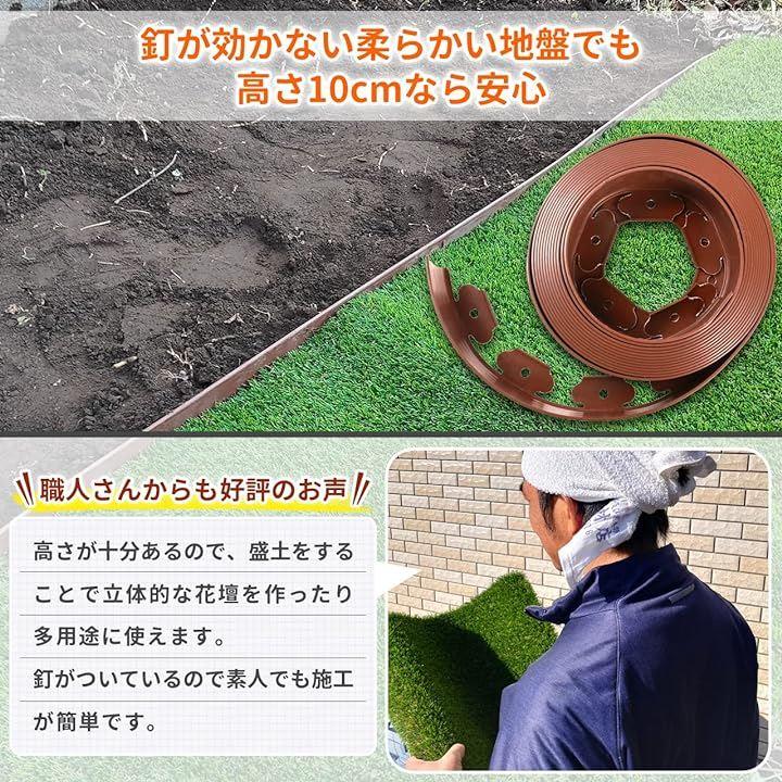 「庭づくりに最適な形状と高さ」土留め・芝の根止めや、砂利や人工芝の見切り、花壇づくりに最適な一体型のシートです。