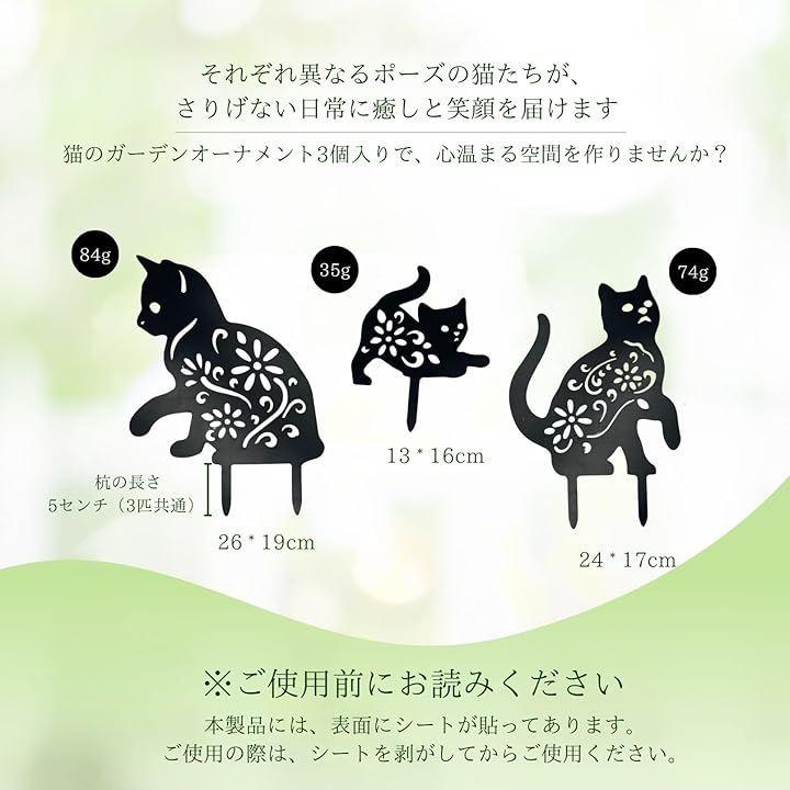 「梱包内容」ねこ型 ガーデンオーナメント x3