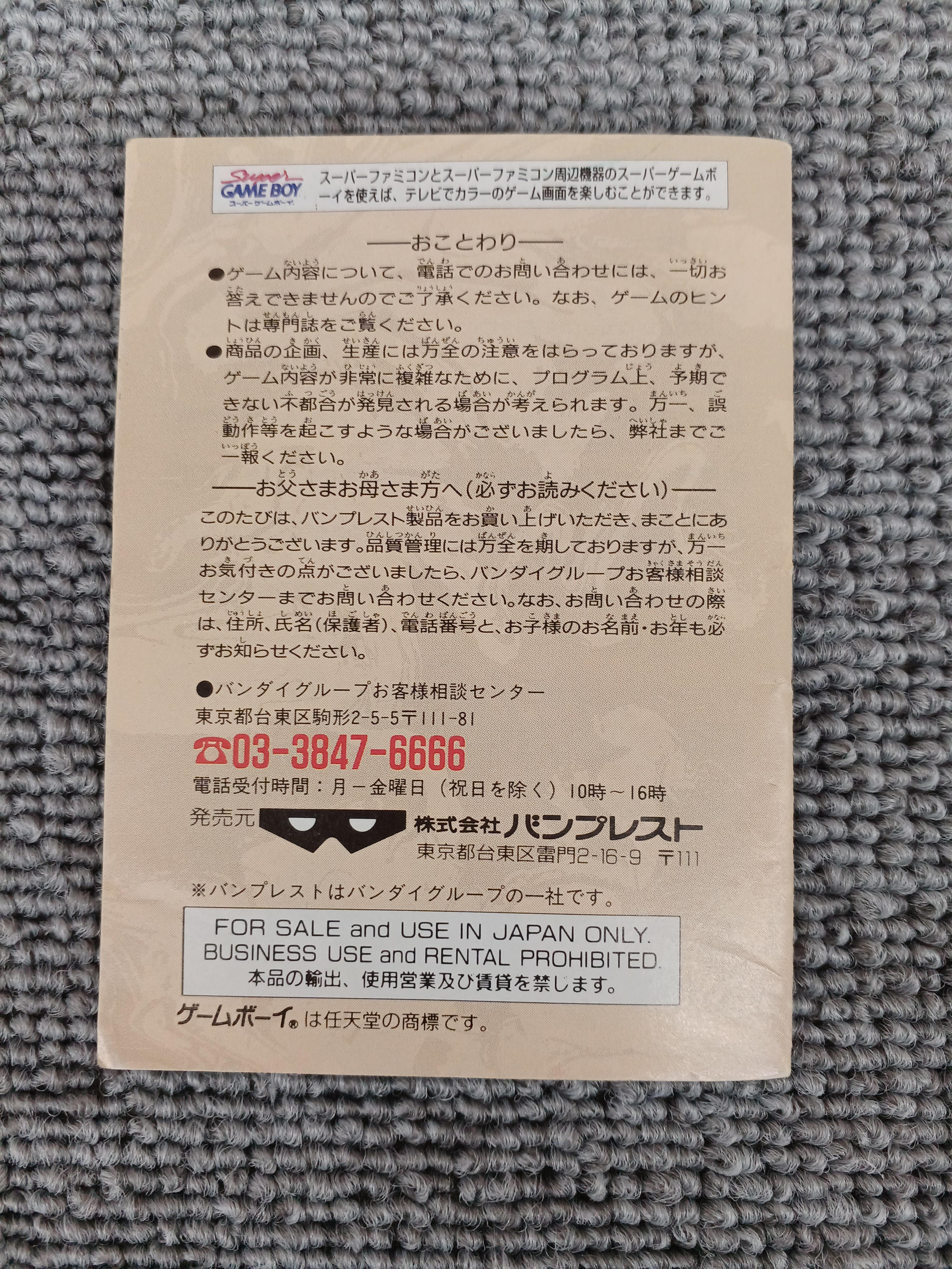 GBソフト ONI5 隠忍を継ぐ者 バンプレスト ゲームボーイソフト バンプレストONI5 隠忍を継ぐ者GBソフト