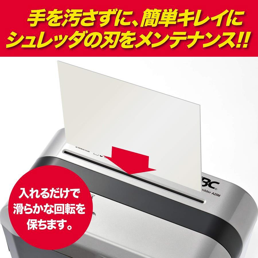 シート内に含まれた潤滑剤がシュレッダの刃に塗布され、紙詰まりを防ぎます。