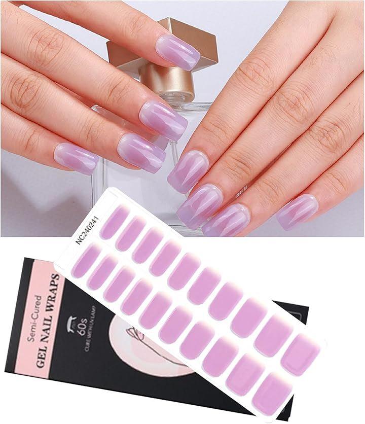 1シートに10サイズ、20枚のジェルネイルシール。 生ジェルを半硬化させたネイルシールで柔らかく伸びやすく貼りやすいです。