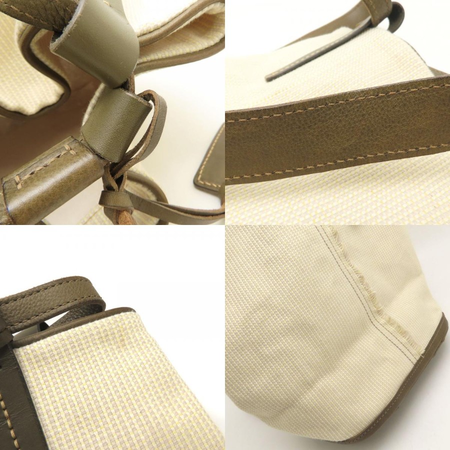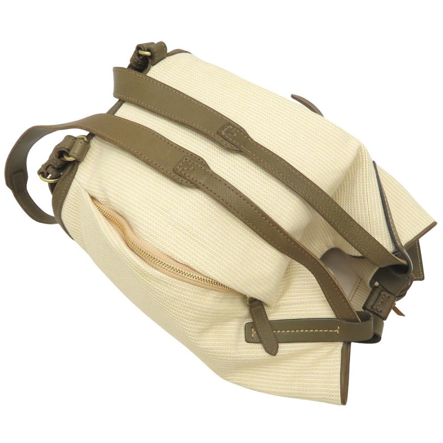 | 商品説明 | | 取扱店舗 | 新富町店 (TEL049-229-2700) | | 状態 | 中古ABランク | | 素材 | レザー / 麻 / 綿 | | 色 | アイボリー / カーキ | | サイズ | W24cm×H33cm×D16cm