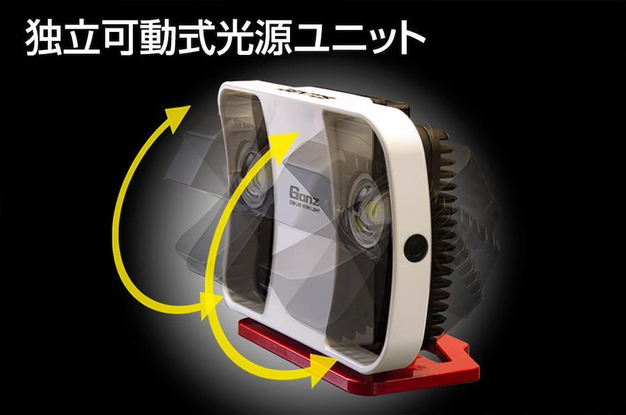 2つの光源ユニットが独立して照射角調整可能内蔵充電池でも、コンセントからの給電でも使用可能