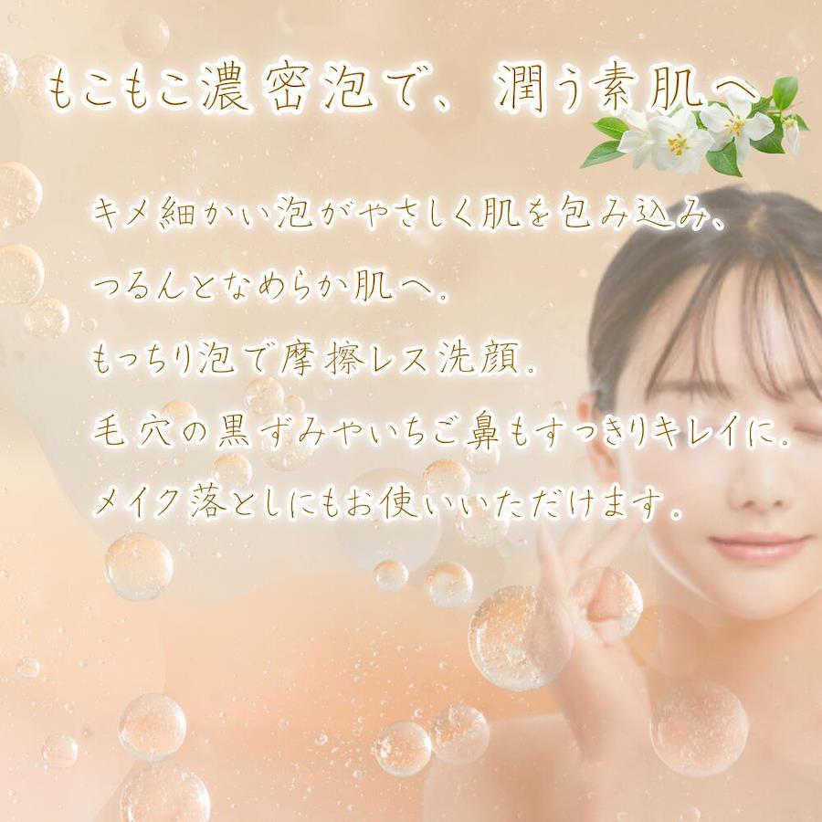 | 豊かな泡立ちとジャスミンの香り | リッチな泡立ちで、なめらかスキンケア体験。 キメ細かい泡とジャスミンの香りが、ご自宅を極上のリラックス空間に。 |