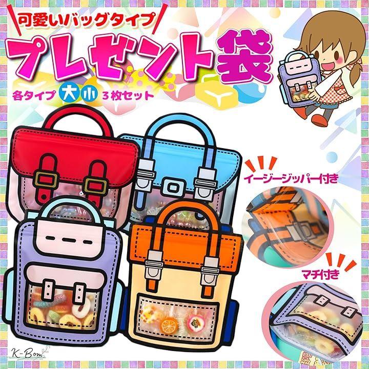 色鮮やかな赤のスクールバッグ型のプレゼント袋が大小3枚ずつ、合計6枚入りです。