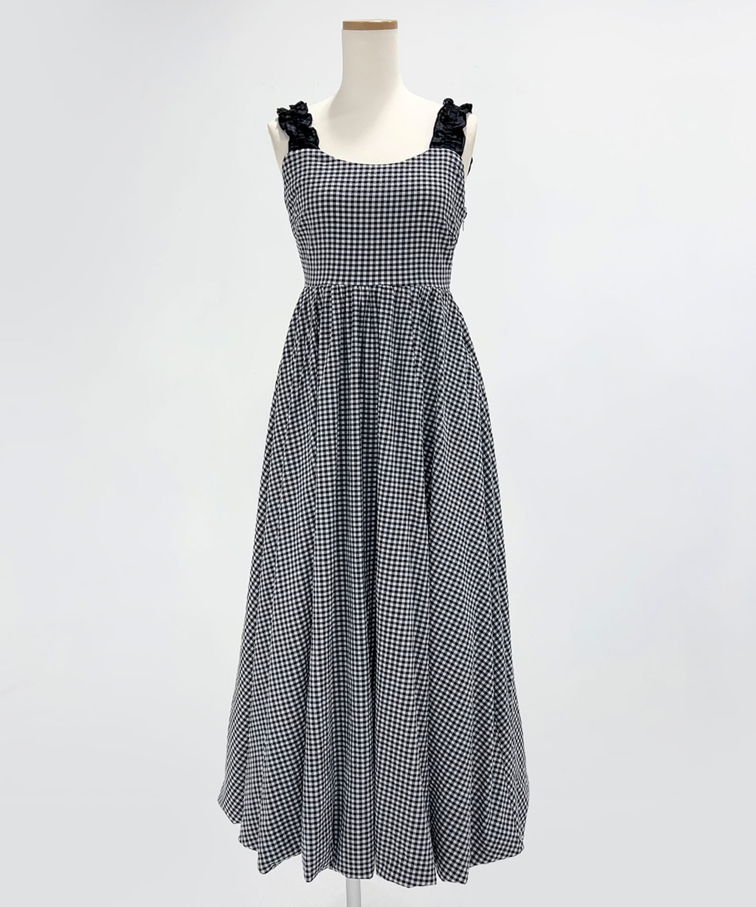 肩フリルは軽やかなオーガンジー素材で、可愛さを引き立てます。