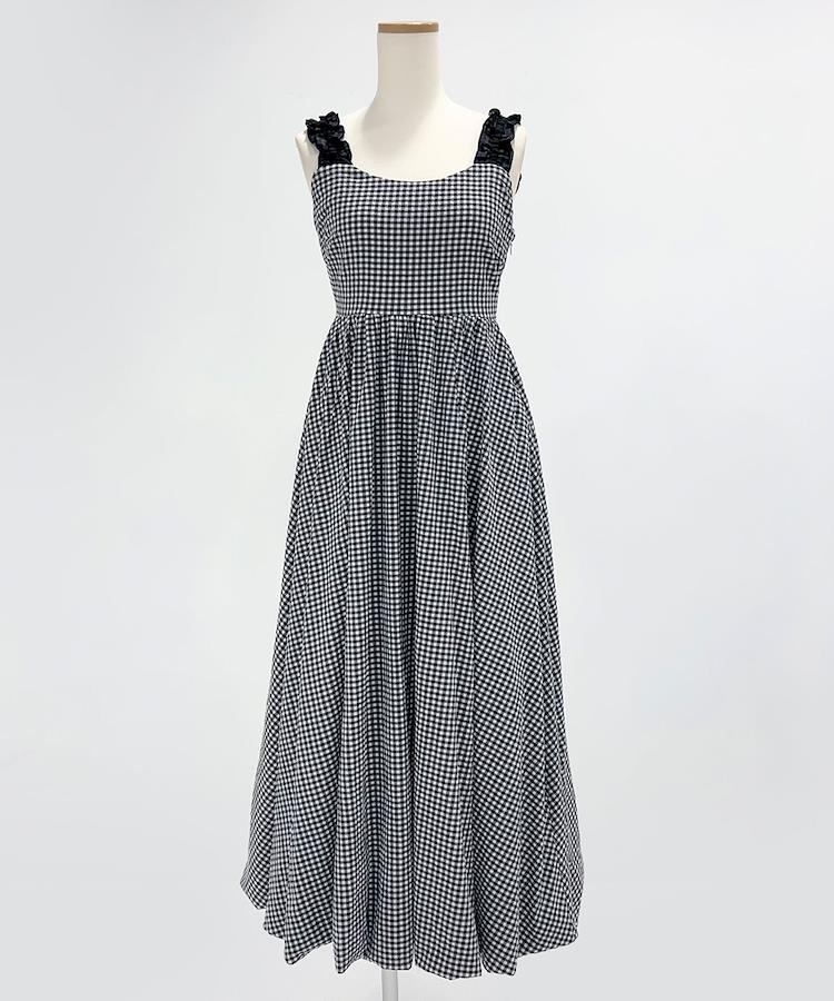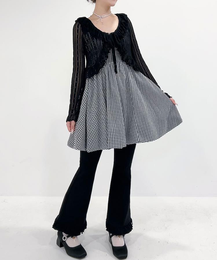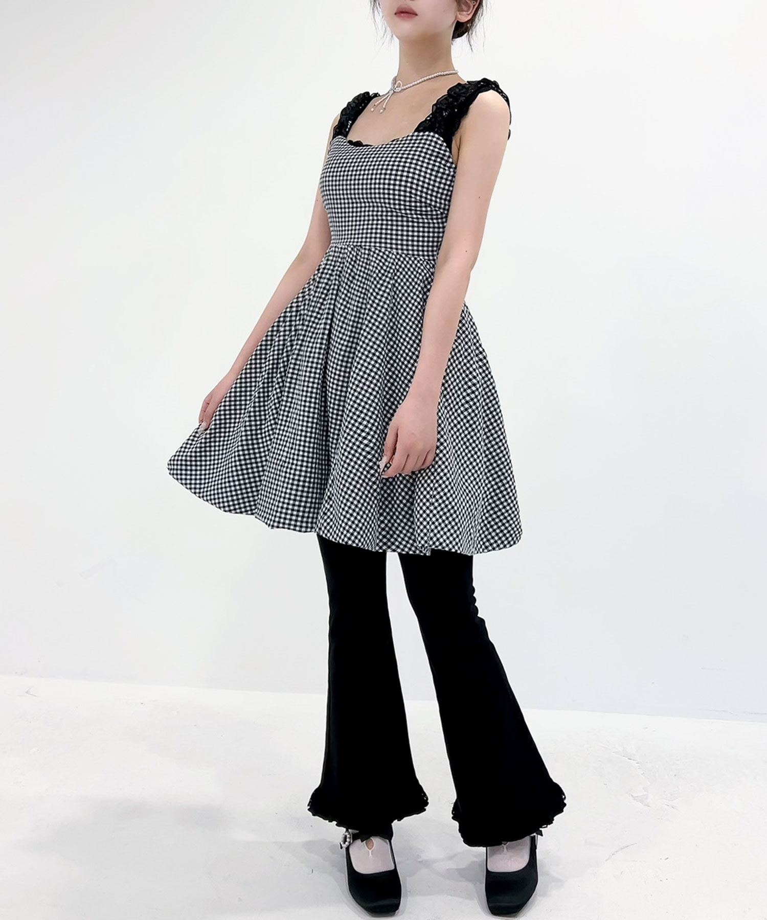 肩フリルは軽やかなオーガンジー素材で、可愛さを引き立てます。